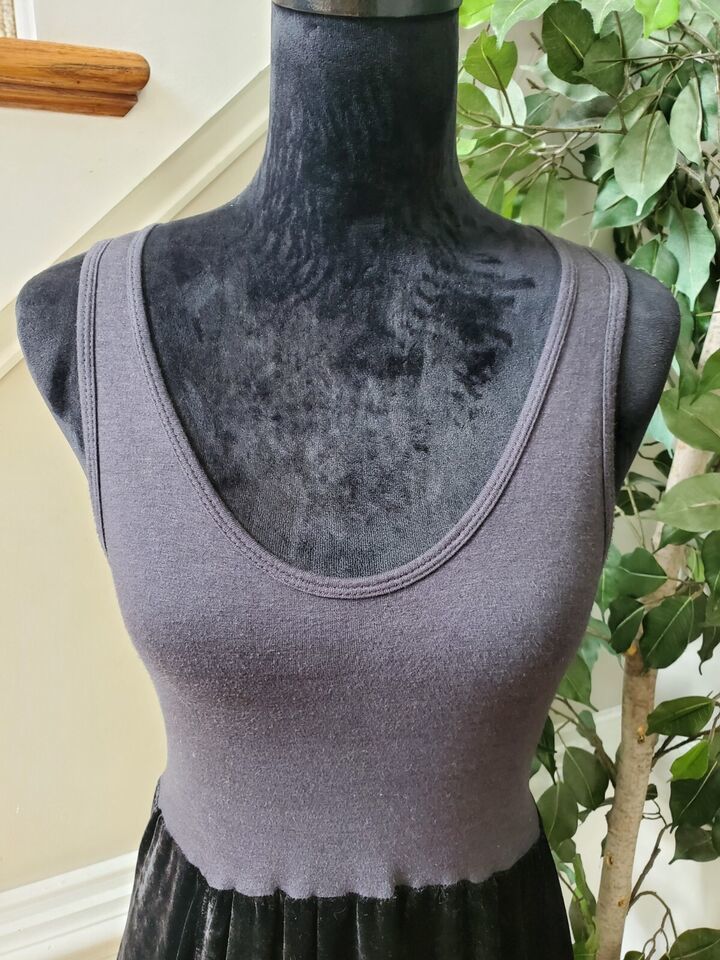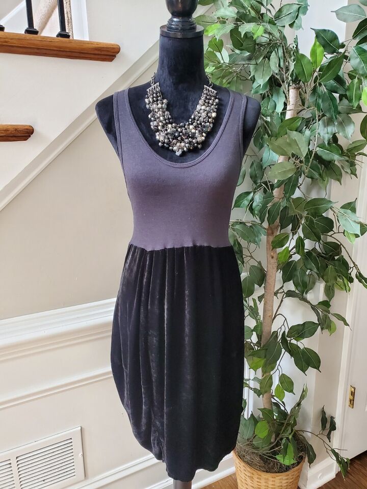 Clu Women's Gray & Black Hemp Scoop Neck Sleeveless Casual Knee Length Dress XS