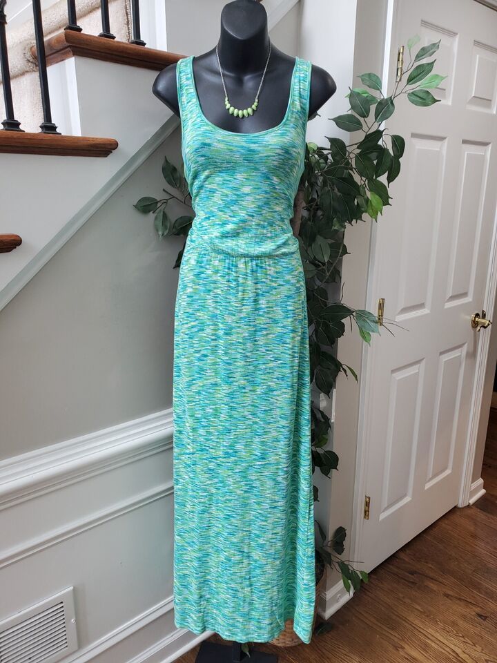 Gap Women's Green Cotton Scoop Neck Sleeveless Casual Long Maxi Dress Size Small