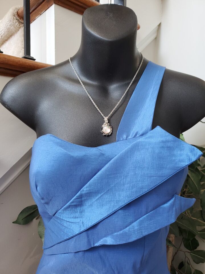 Elevate your wardrobe with this stunning Romeo Juliet blue maxi dress. The elegant one-shoulder neckline and sleeveless design create a timeless silhouette perfect for any occasion, from a casual day out to a formal evening event. The dress features a zip closure for a secure fit and is made from lightweight polyester material, making it perfect for all seasons.