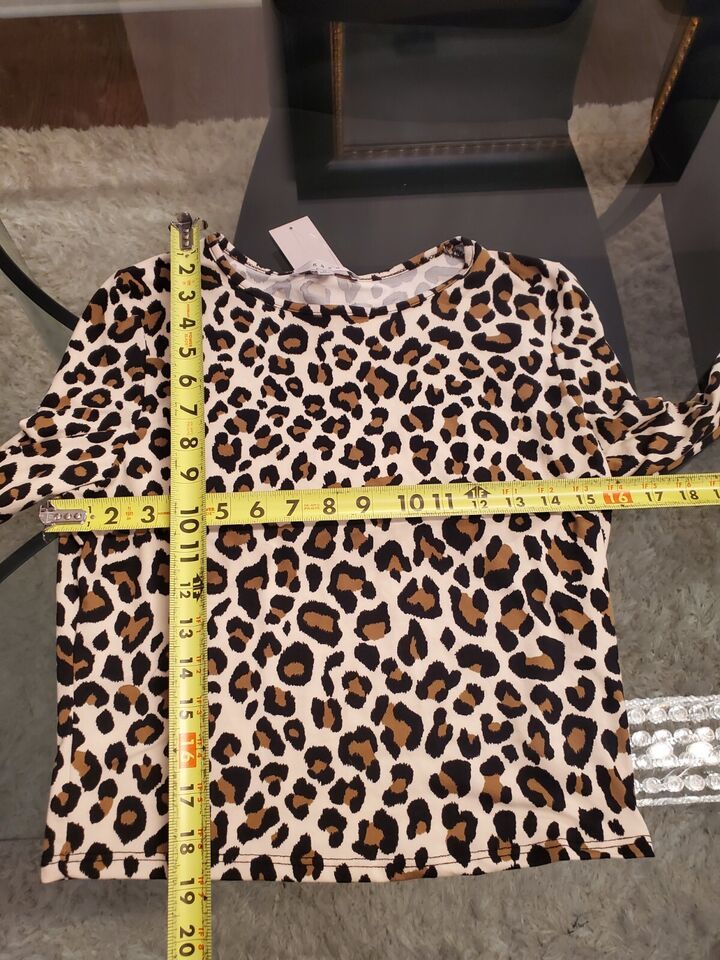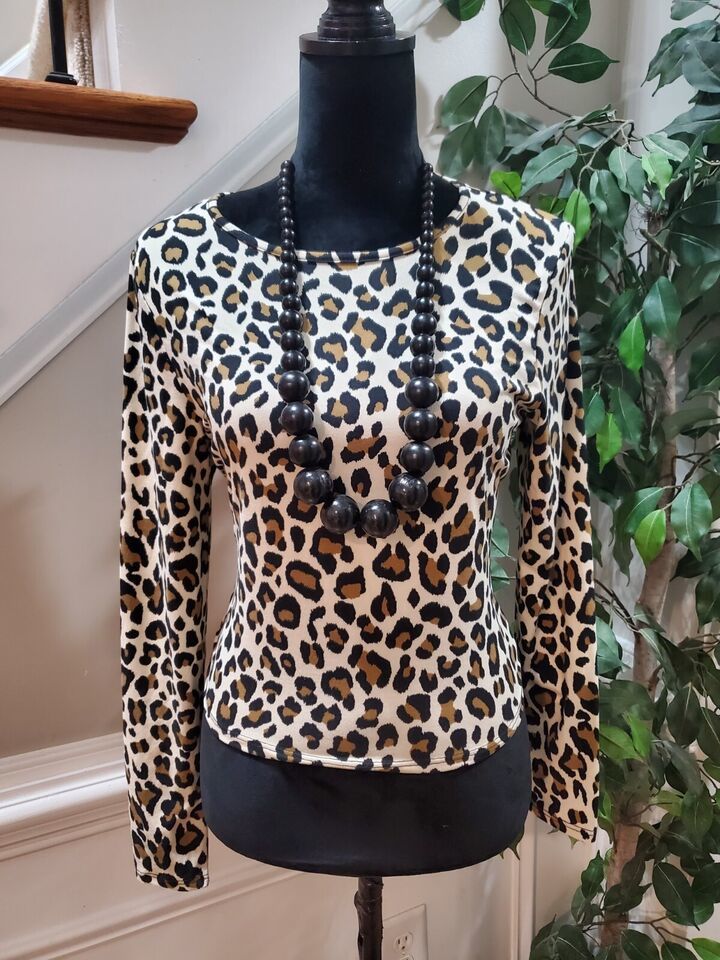 Gaze Women's Leopard Print Polyester Round Neck Long Sleeve Casual Top Blouse M.