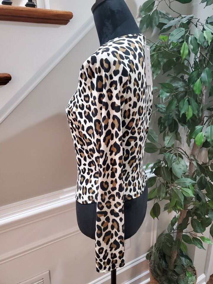 Gaze Women's Leopard Print Polyester Round Neck Long Sleeve Casual Top Blouse M