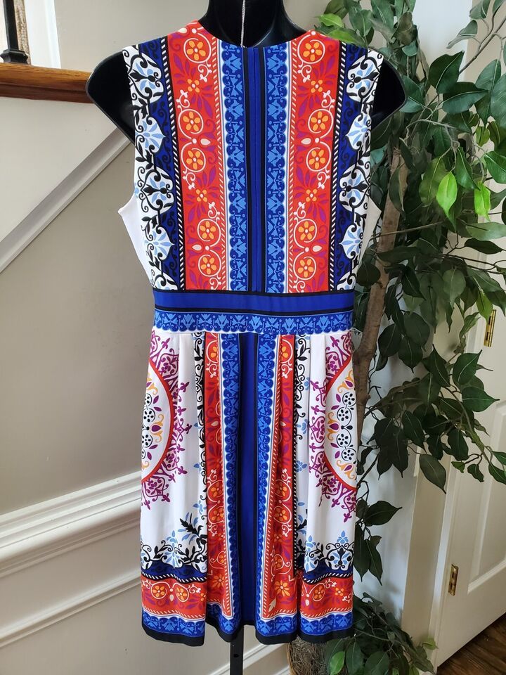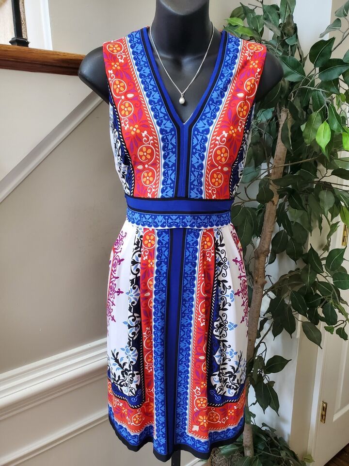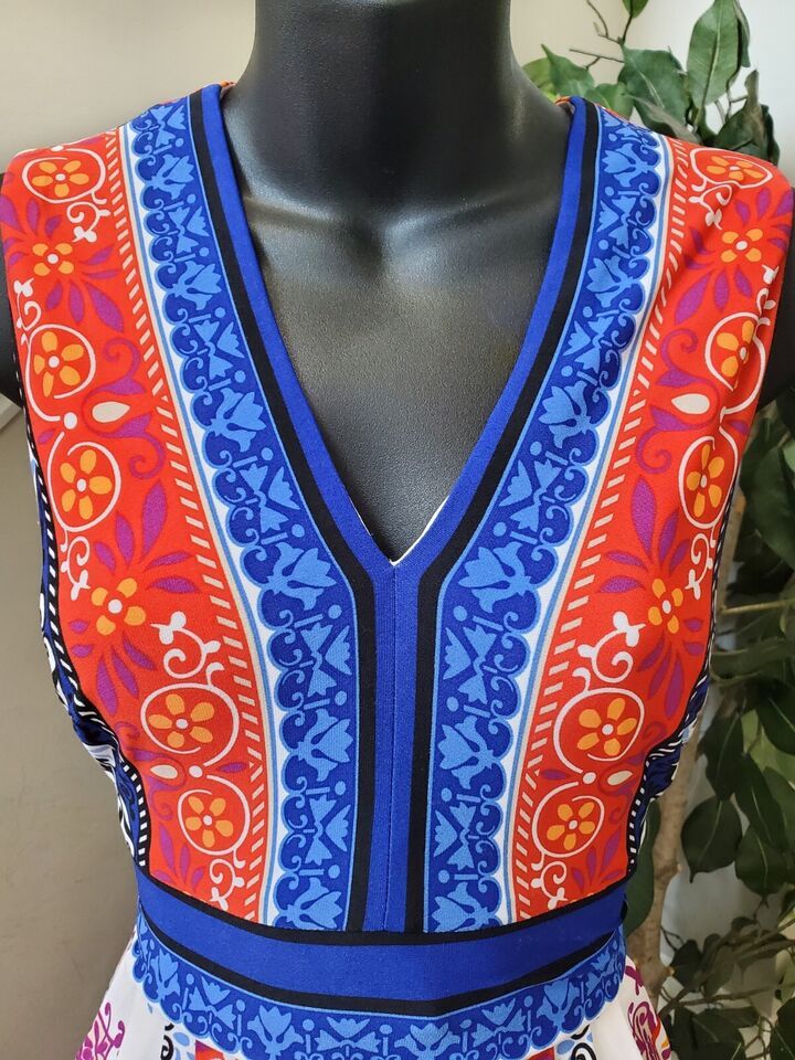 Studio One Women's Multicolor Polyester V-Neck Sleeveless Knee Length Dress PS.