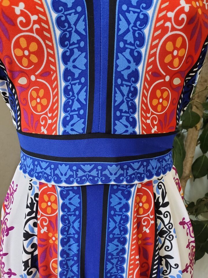 Studio One Women's Multicolor Polyester V-Neck Sleeveless Knee Length Dress PS