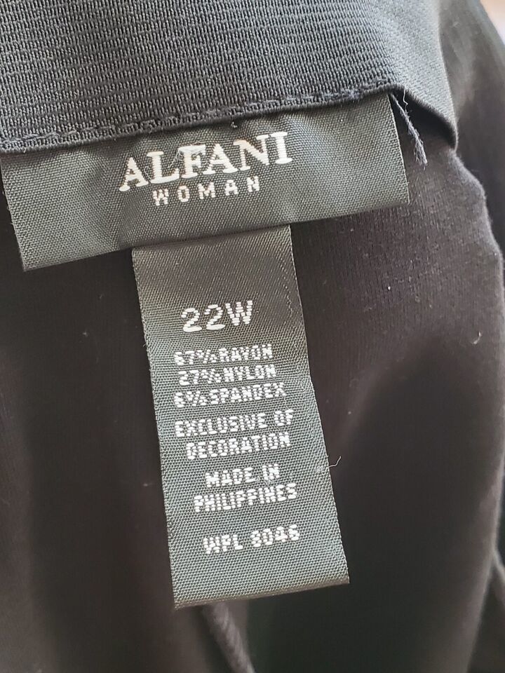 Alfani Women's Black Brocade Rayon Mid Rise Pull on Straight Casual Pant 22W