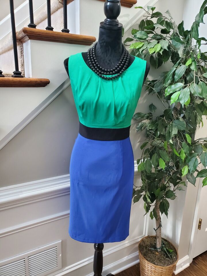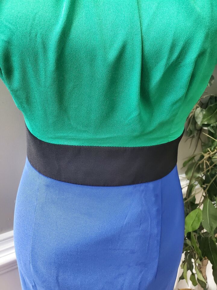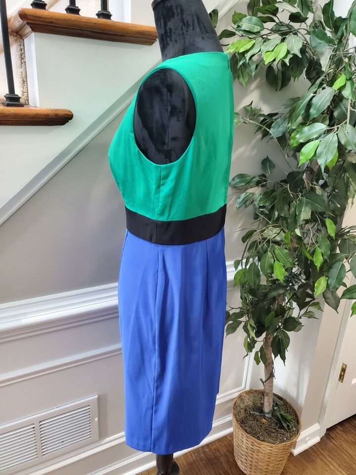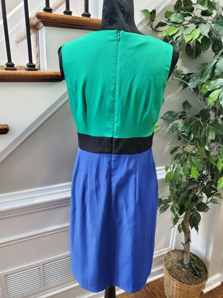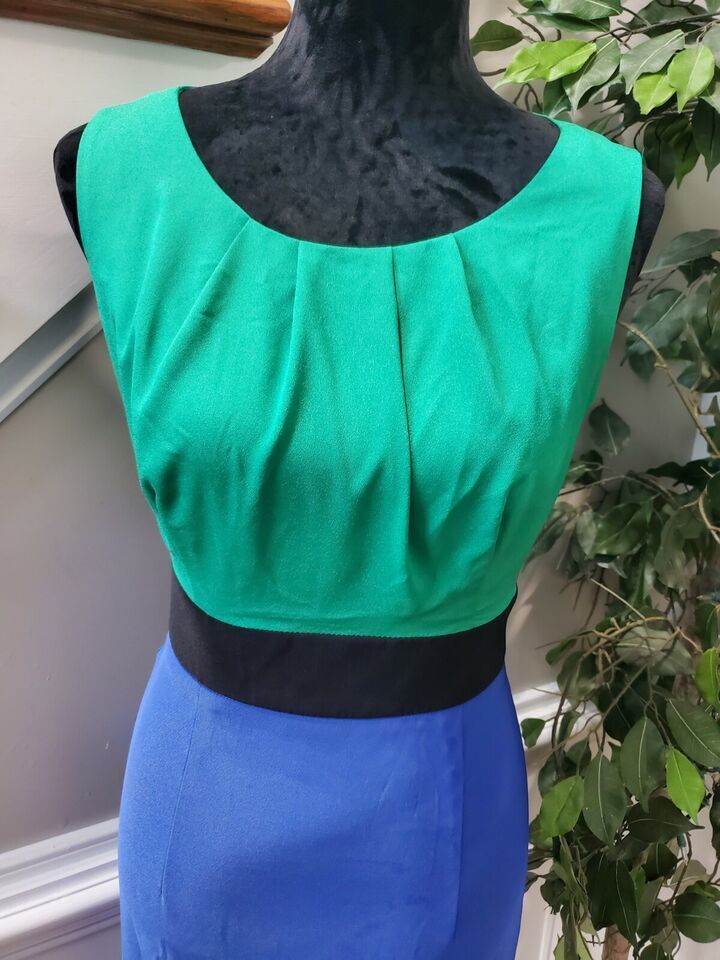 AB Studio Women Blue & Green Polyester Sleeveless Round Neck Knee Length Dress 8