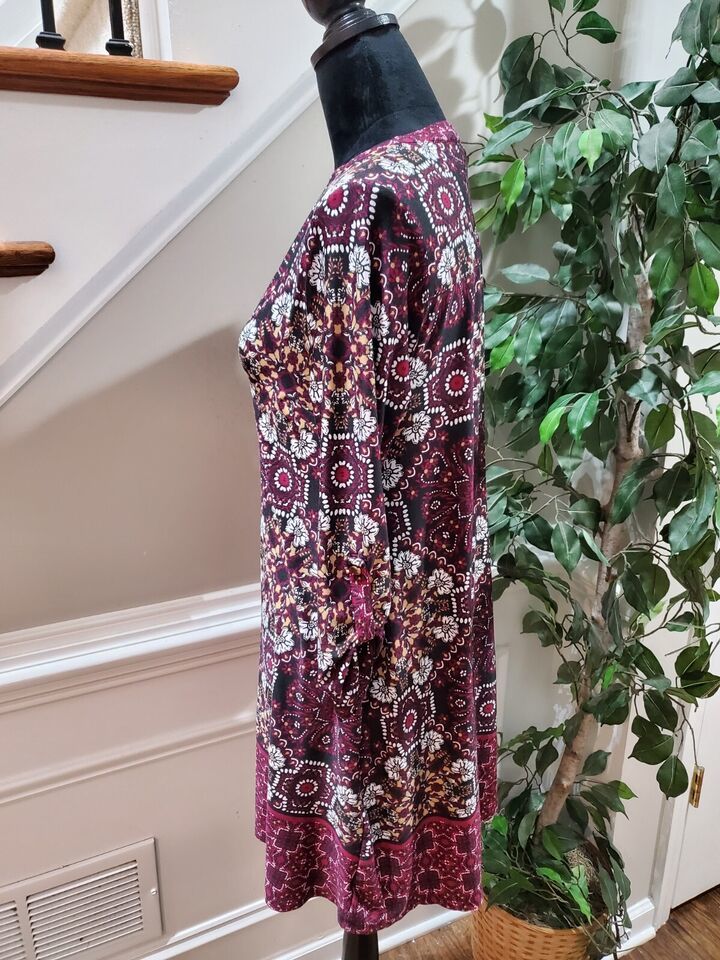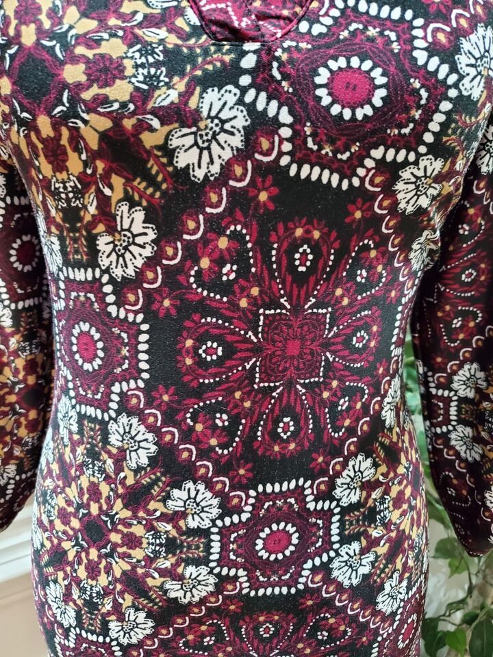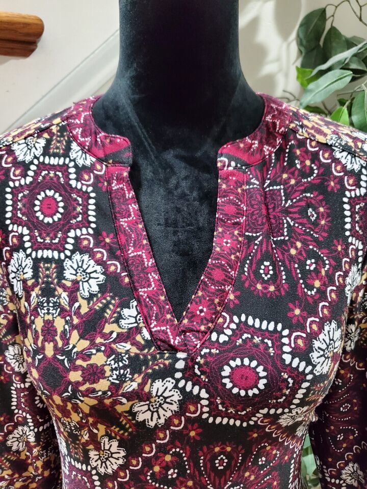New Directions Women's Floral Polyester V-Neck Long Sleeve Knee Length Dress PS.
