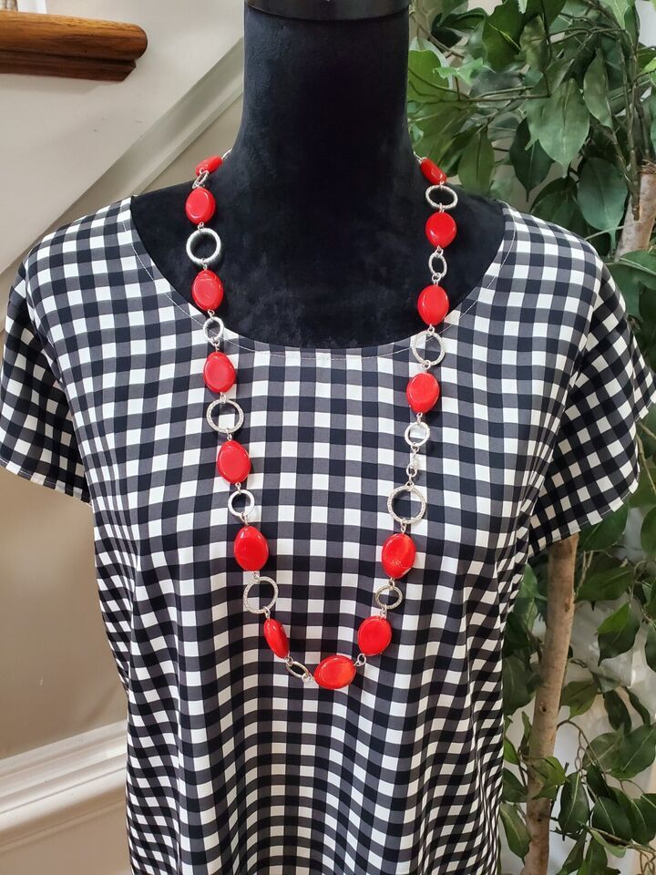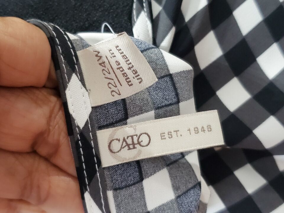 The top features a round neck and pullover closure, with a classic check pattern that adds a touch of modernity to the design. This plus-size top is perfect for women who want to make a fashion statement without compromising on comfort. The Cato brand ensures quality, and the blouse is machine washable for easy care.