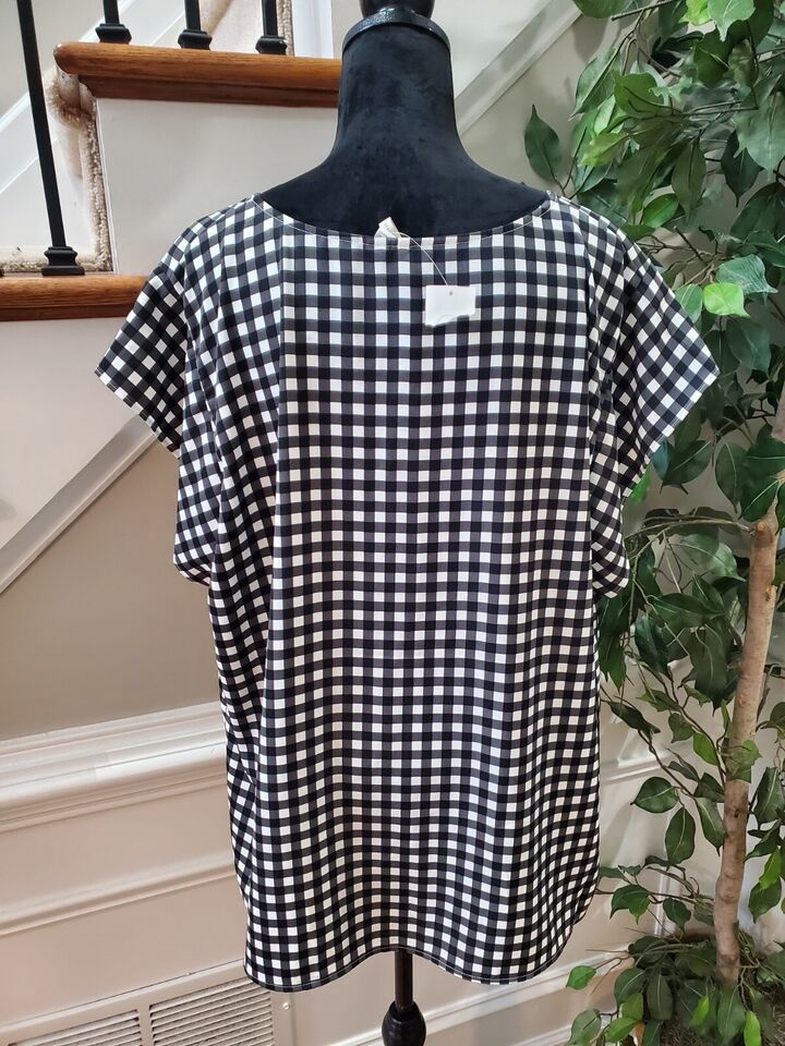 Cato Women Black White Polyester Short Sleeve Round Neck Top Blouse Size 22/24W