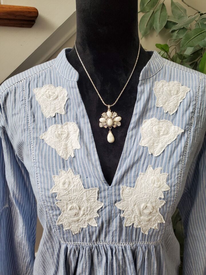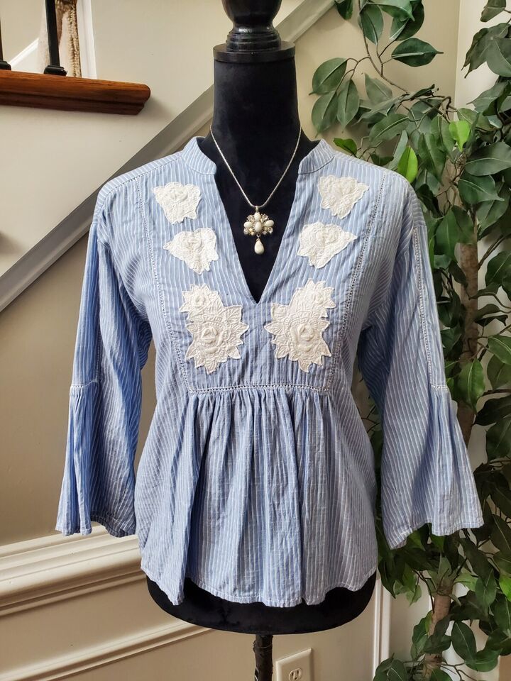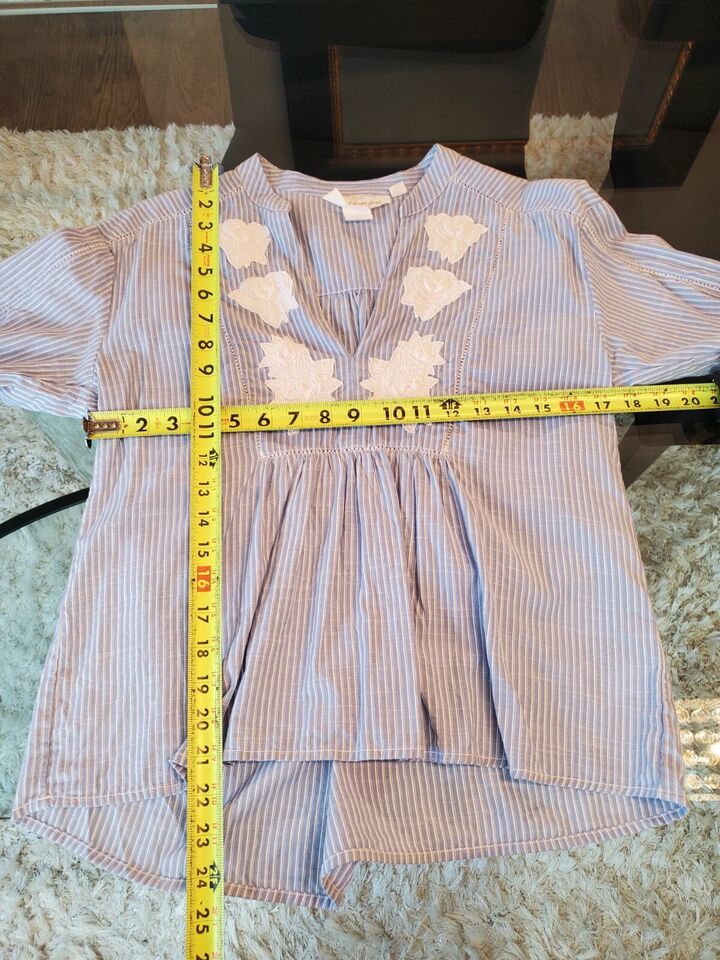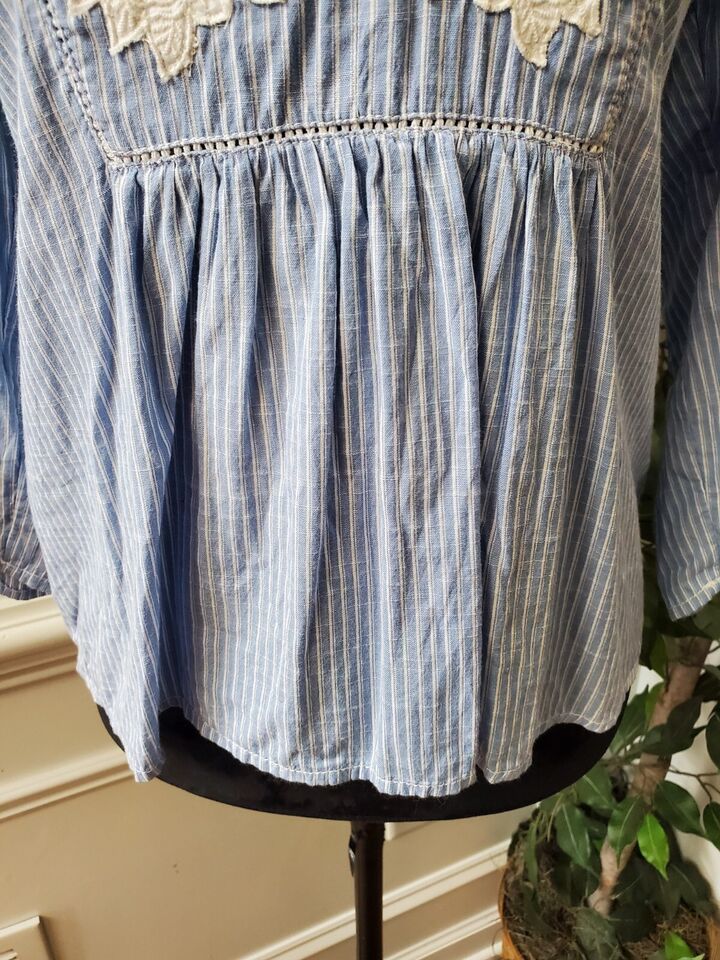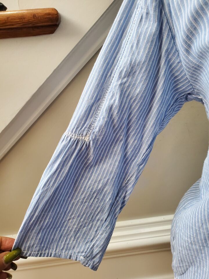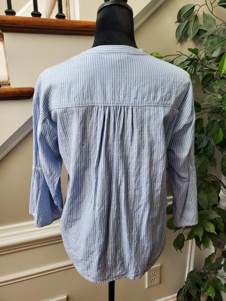 L.O.G.G Women's Blue Striped 100% Cotton V-Neck Long Sleeve Casual Top Blouse 2.