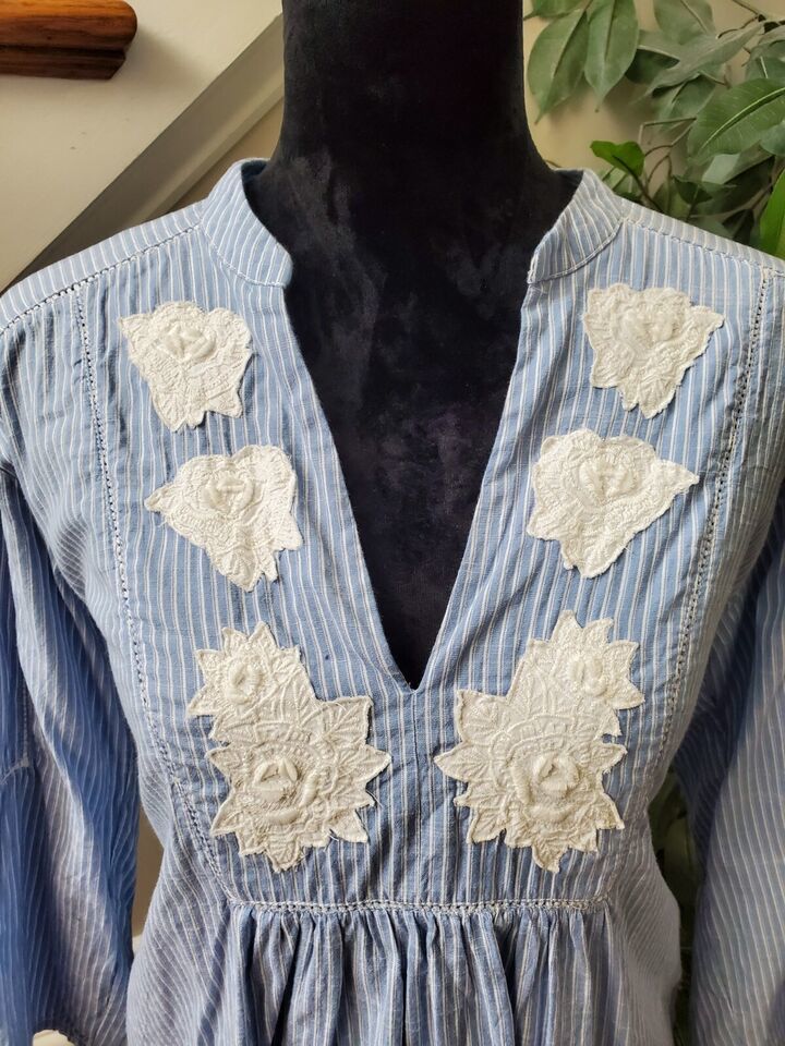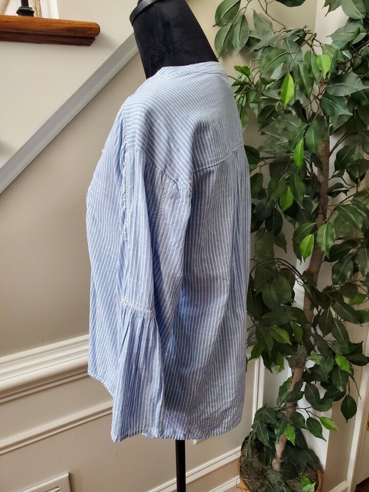 L.O.G.G Women's Blue Striped 100% Cotton V-Neck Long Sleeve Casual Top Blouse 2