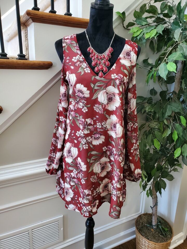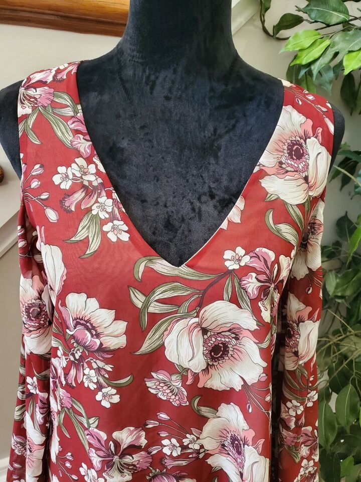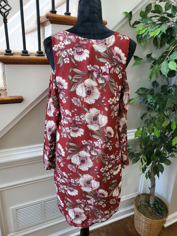 Forever21 Women's Red Polyester V-Neck Cold Shoulder Sleeve Knee Length Dress S
