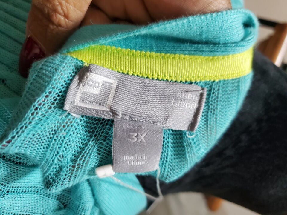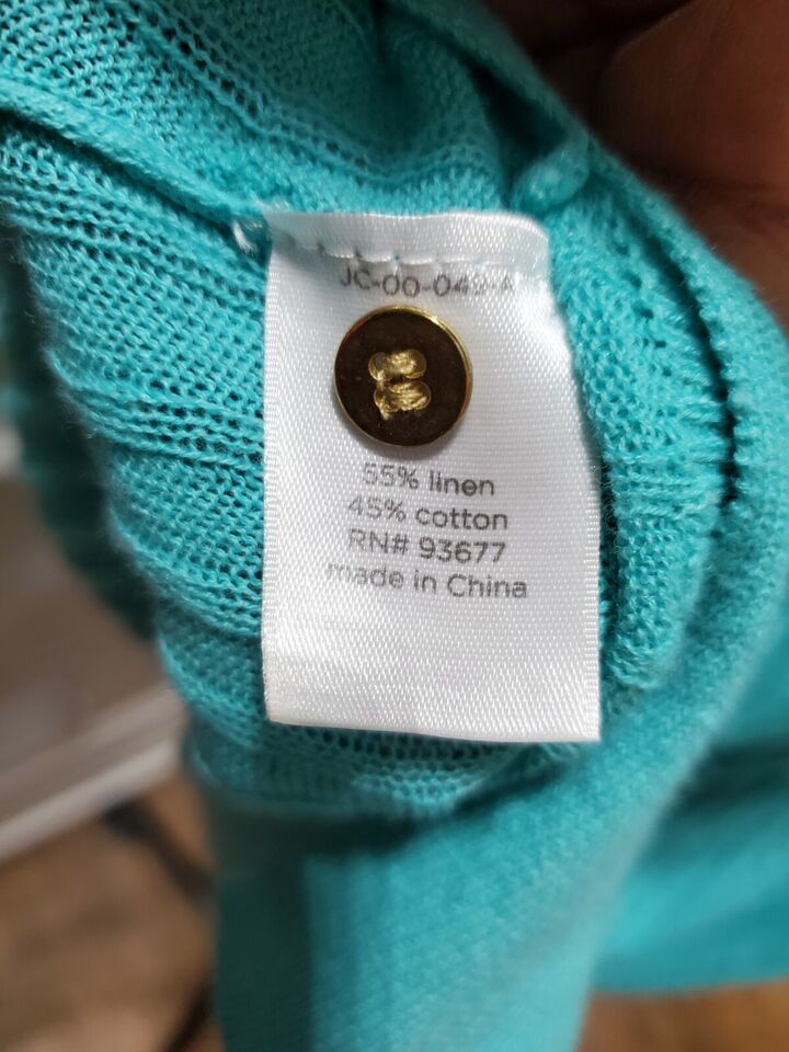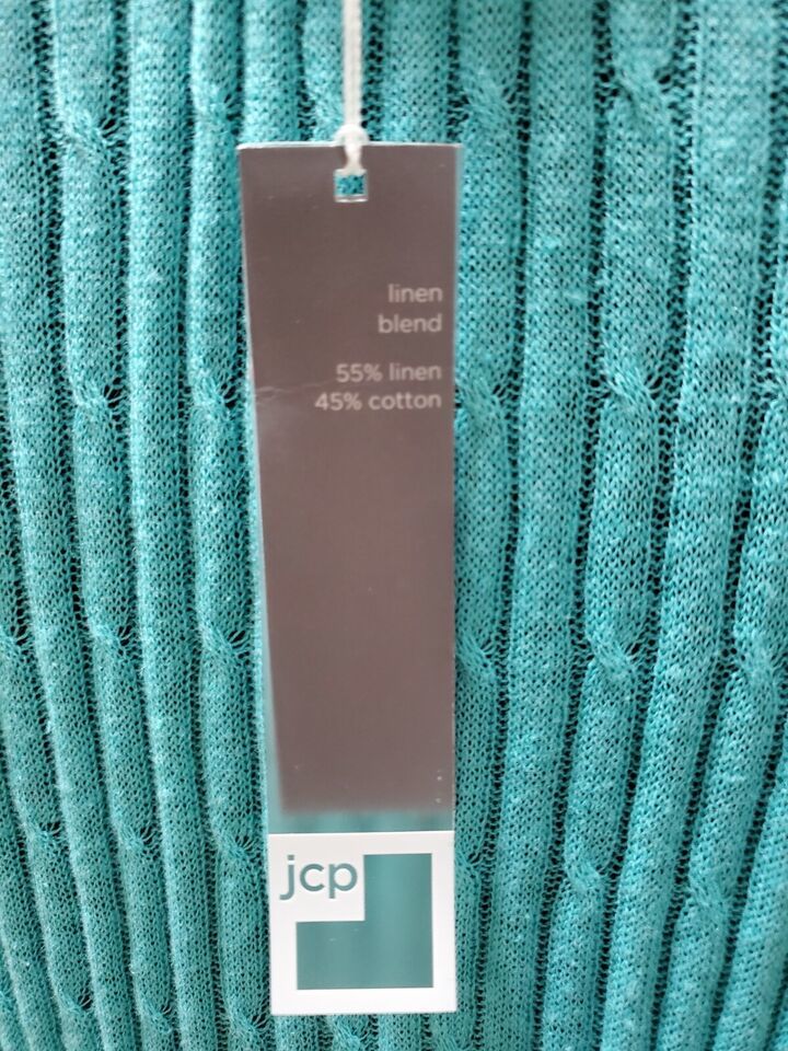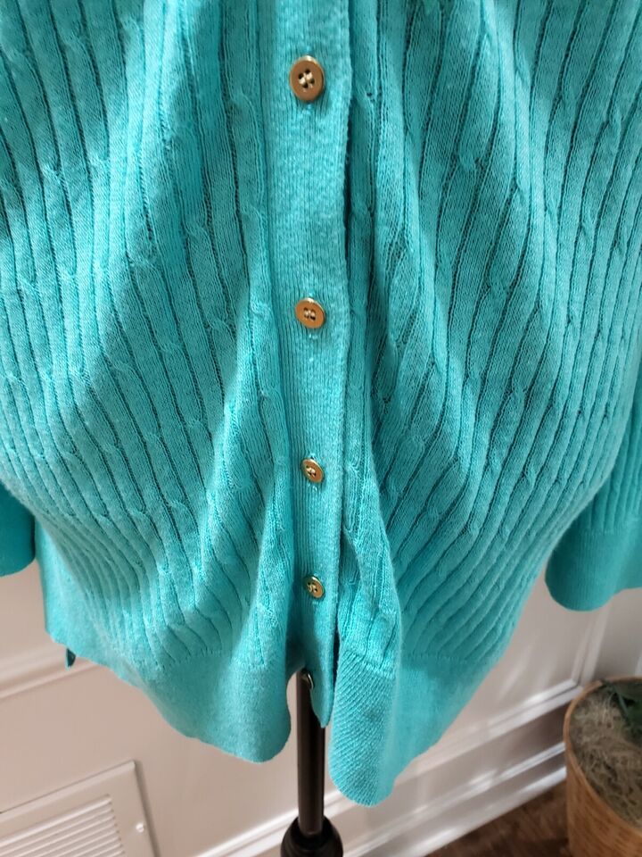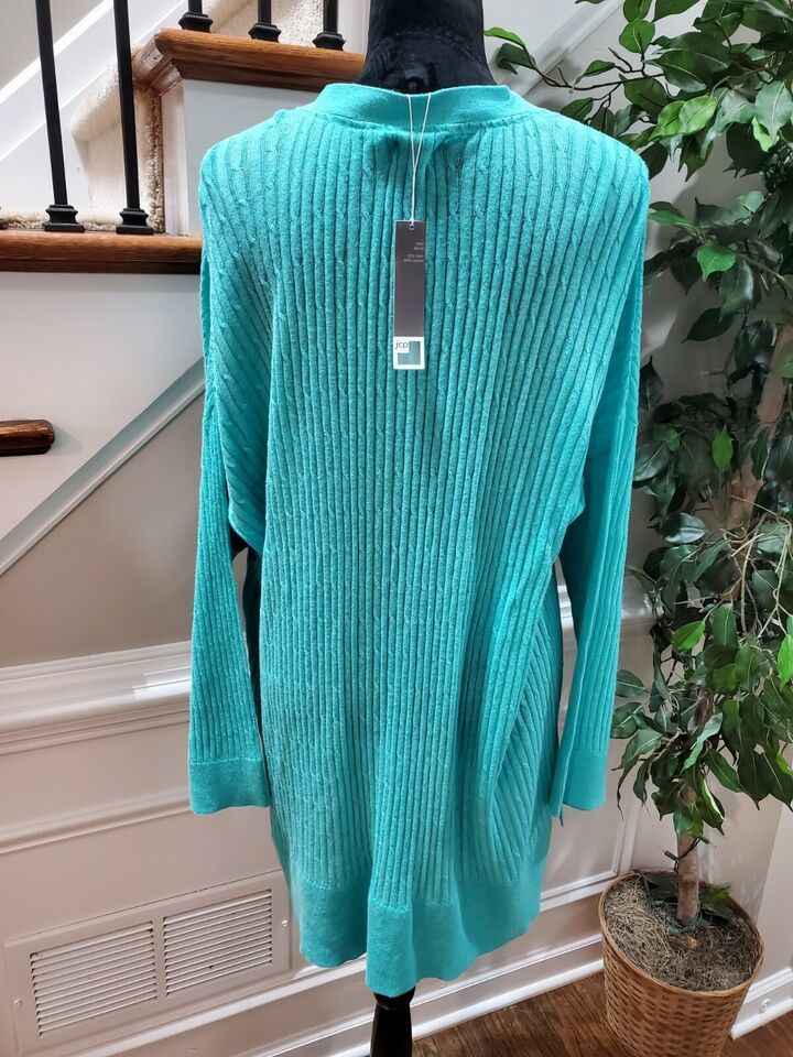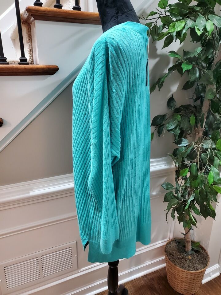 JCP Women's Aqua Linen Cotton V-Neck Long Sleeve Cardigan Sweater Size 3X