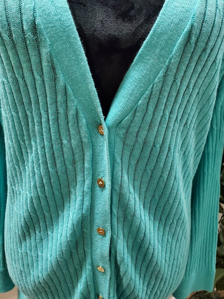 JCP Women's Aqua Linen & Cotton V-Neck Long Sleeve Cardigan Sweater Size 3X