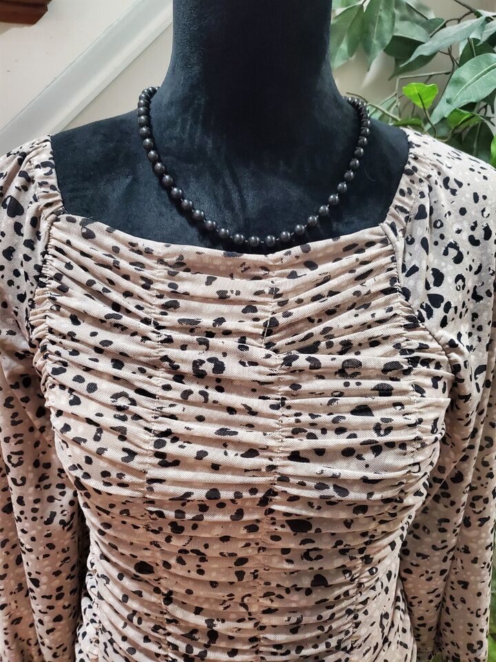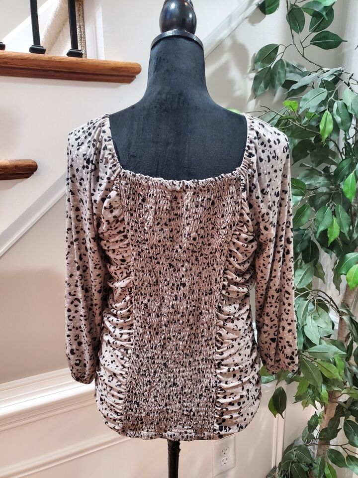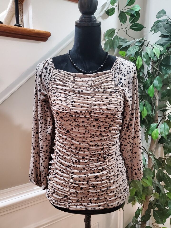 Cato Women's Gray Nylon Square Neck Long Sleeve Casual Top Blouse Size Small.