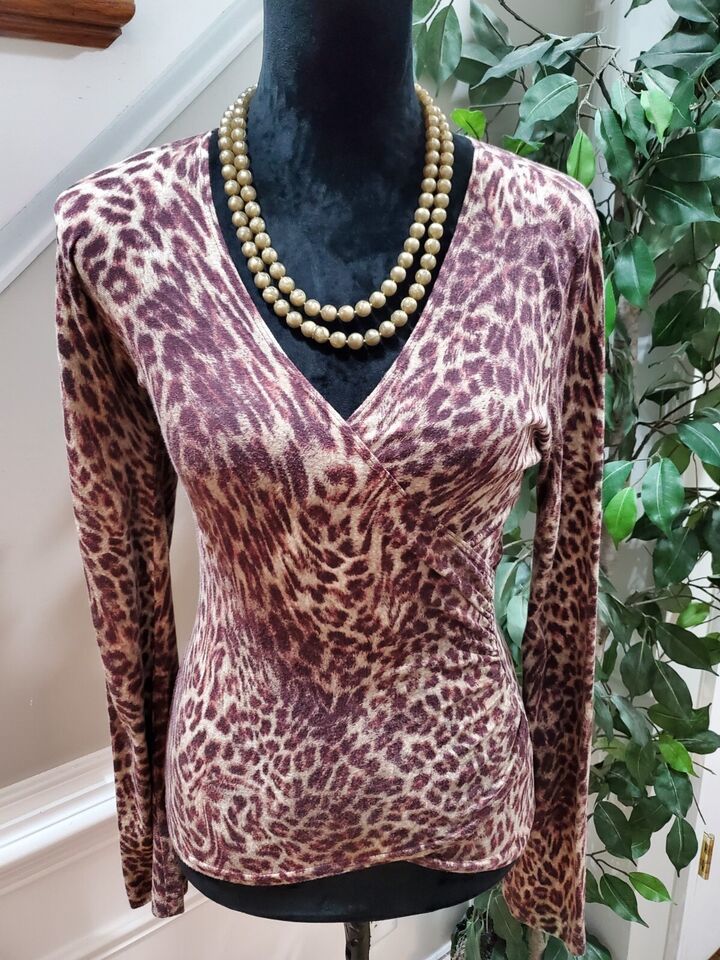 Karen Kane Women's Purple Rayon V-Neck Long Sleeve Casual Top Blouse Size Small