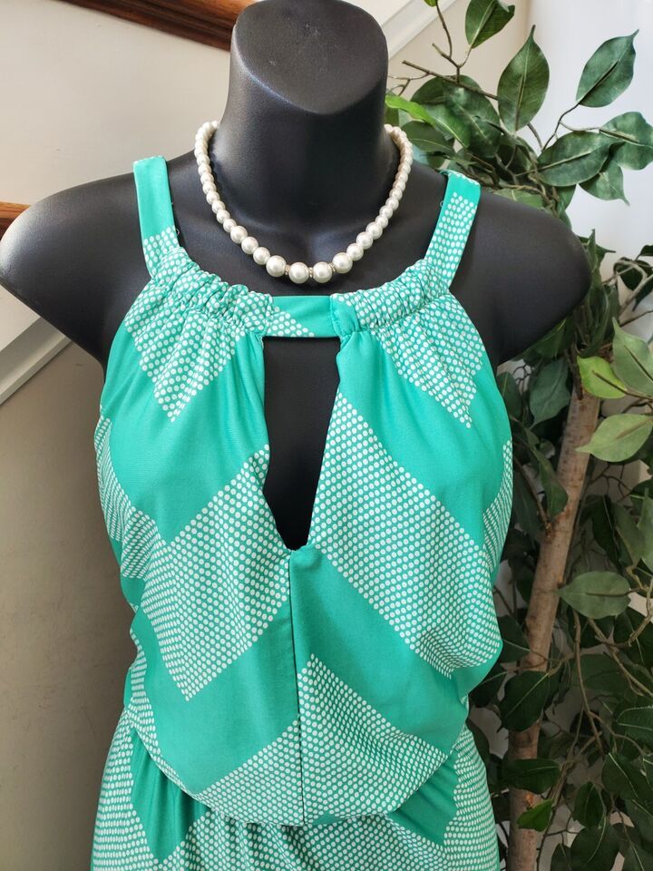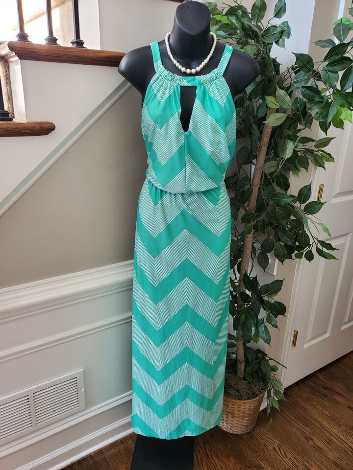 Emma & Michele Women's Aqua Polyester Round Neck Sleeveless Long Maxi Dress L