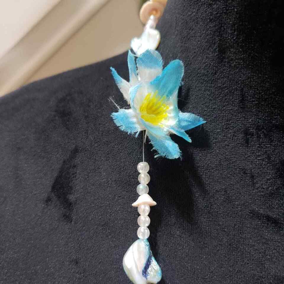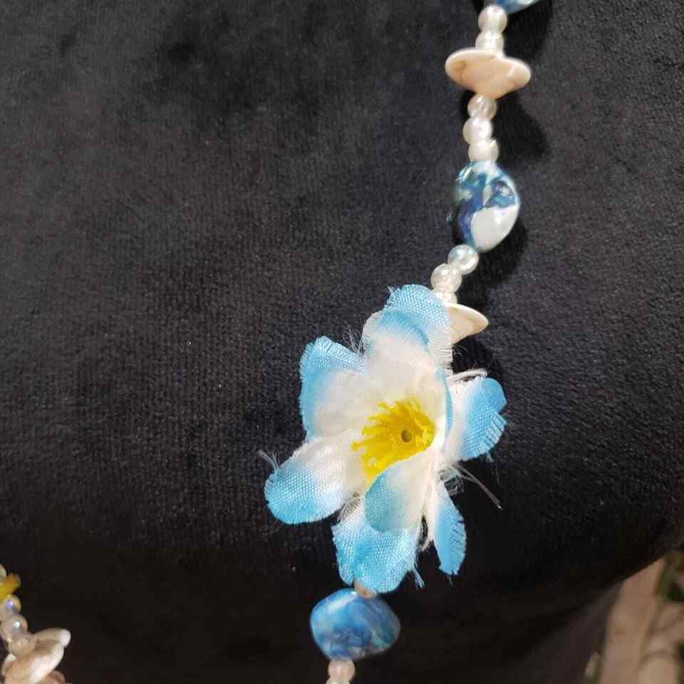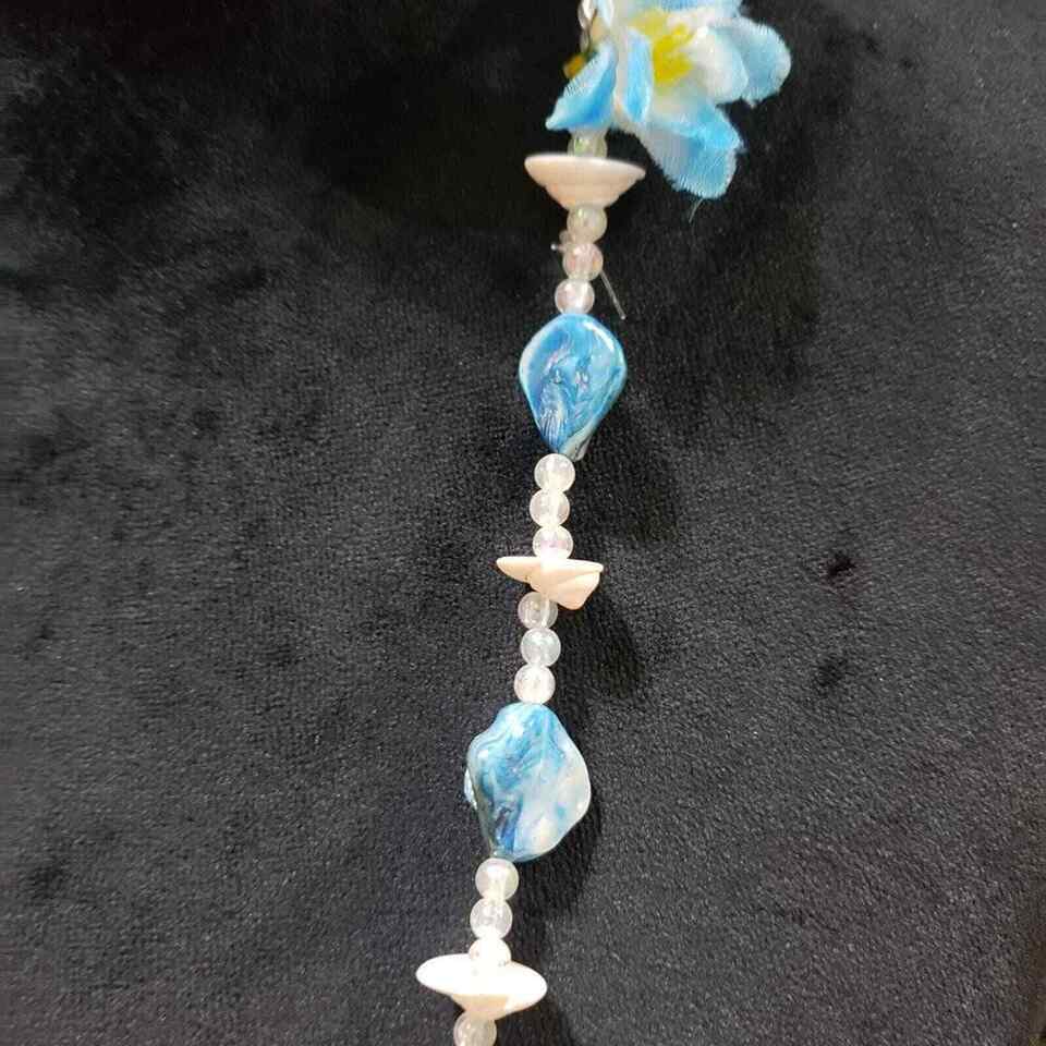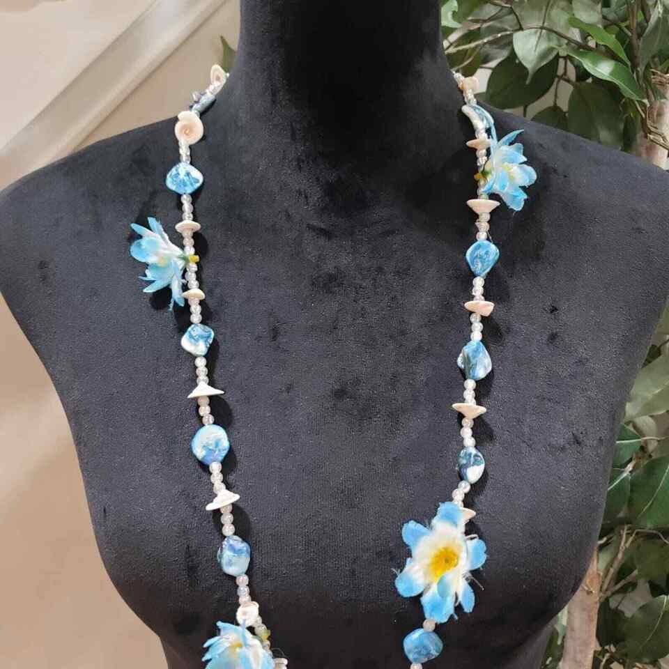 Womens Fashion Faux Pearl, Soft Shell, Flower Beaded Teardrop Necklace