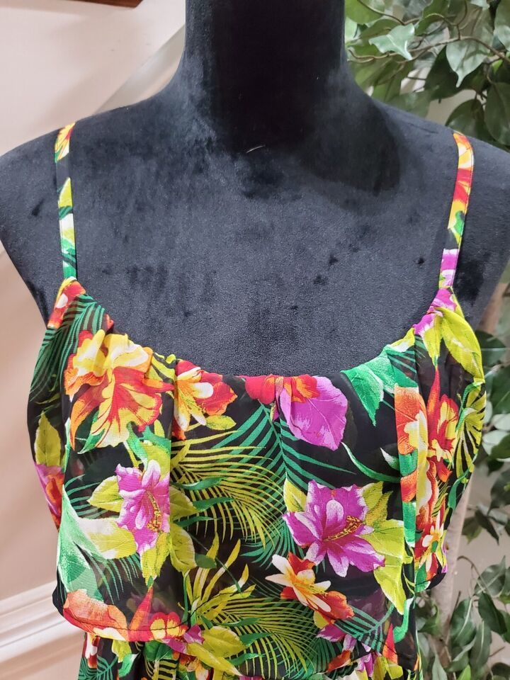 Bongo Women Multi Floral Polyester Sleeveless Scoop Neck Knee Length Dress Small.