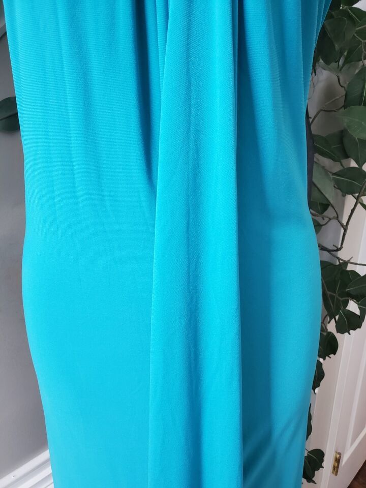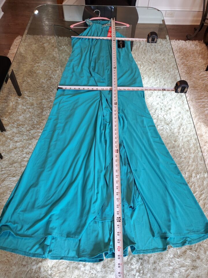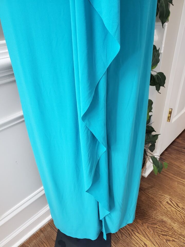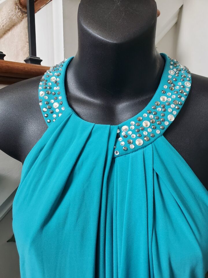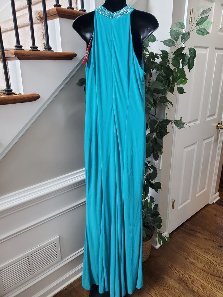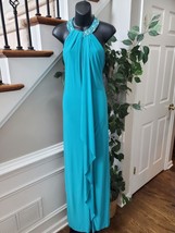 Betsy & Adam Womens Blue Polyester Halter Neck Sleeveless Long Maxi Dress Sz 14