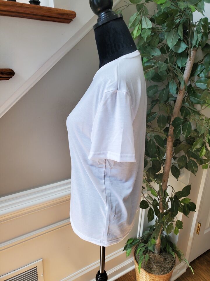 SHEIN Women's White Polyester Crew Neck Short Sleeve Casual Top Shirt Size Small