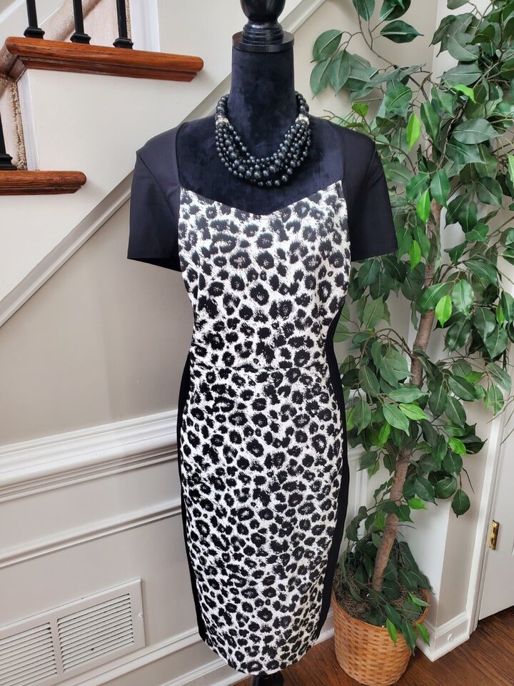 Lane Bryant Women's Black & White Rayon Short Sleeves Knee Length Dress Size 18