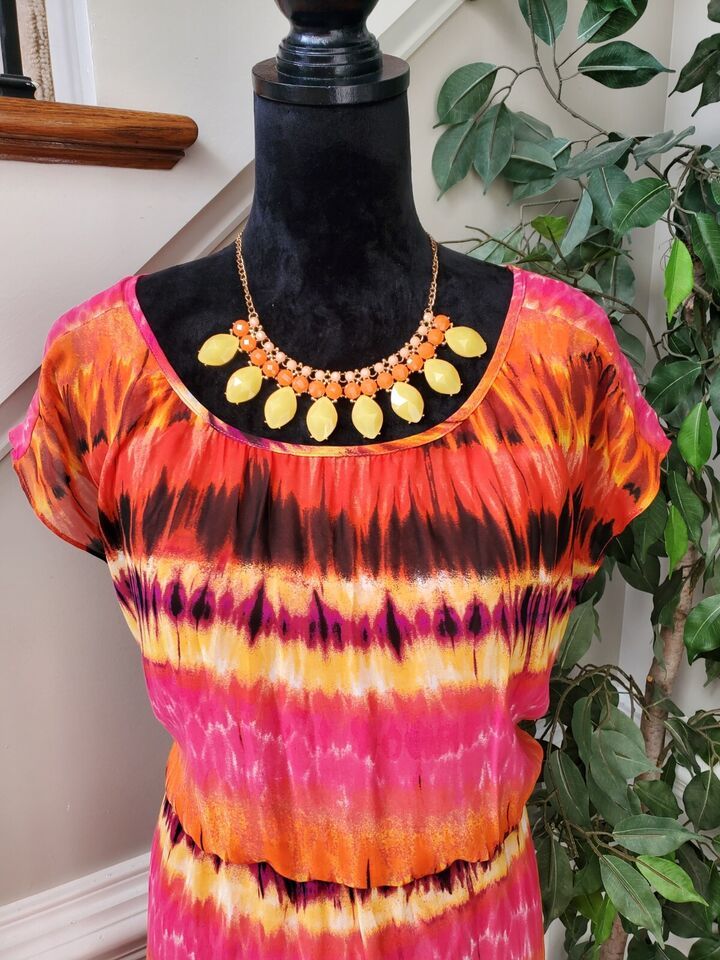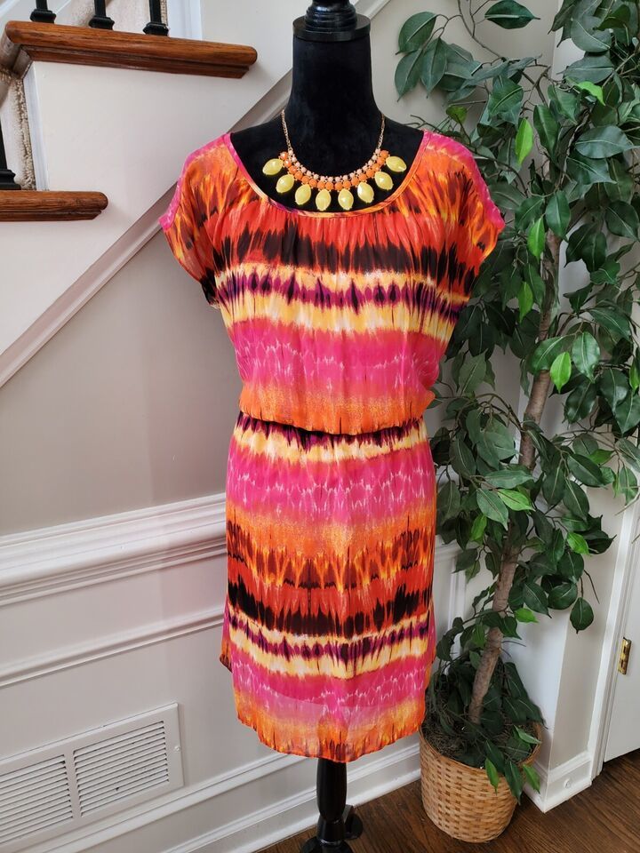 AGB Women Multicolor Polyester Round Neck Sleeveless Knee Length Dress Size 12.