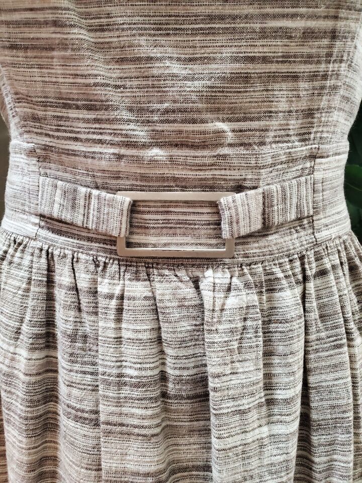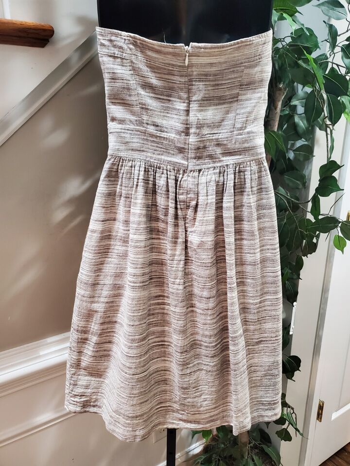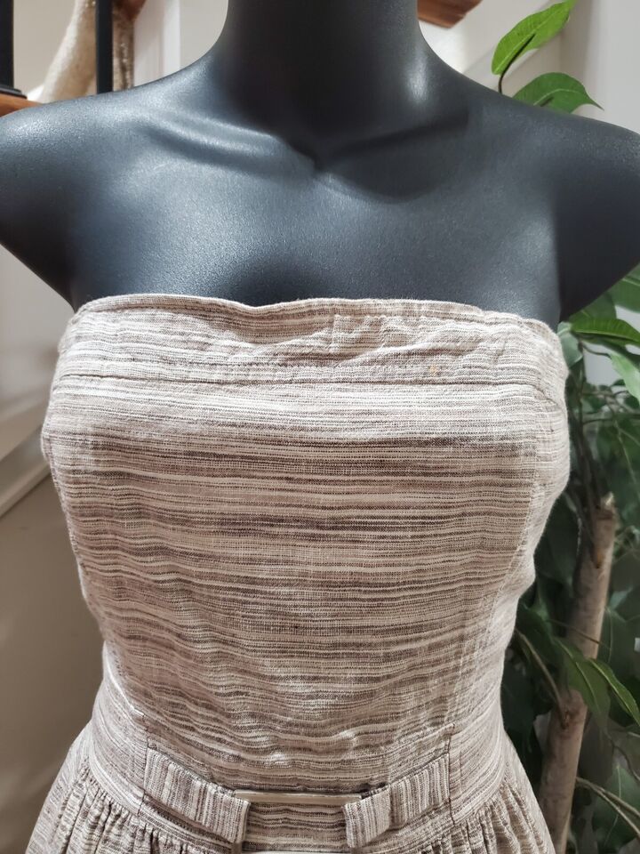 Banana Republic Women's Beige Striped Linen Off The Shoulder Knee Length Dress 2.