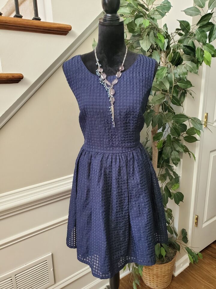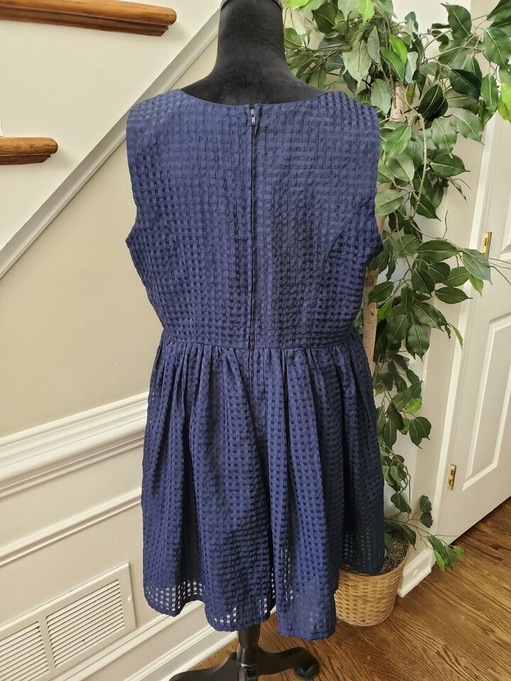 Forever 21 Women Navy Polyester Round Neck Back Zipper Knee Length Dress Size XL.