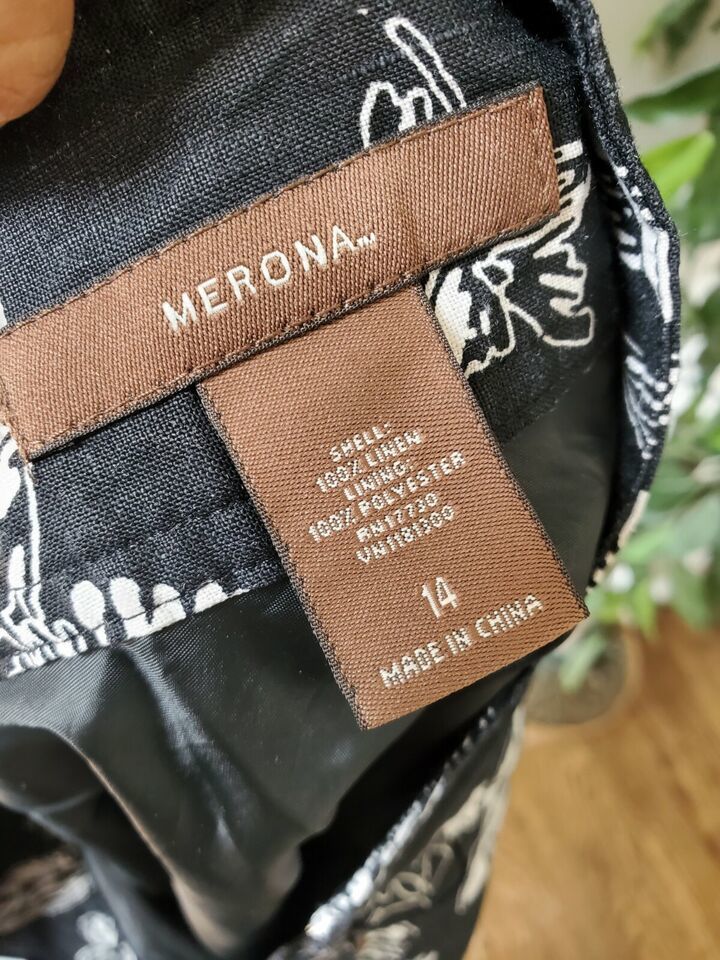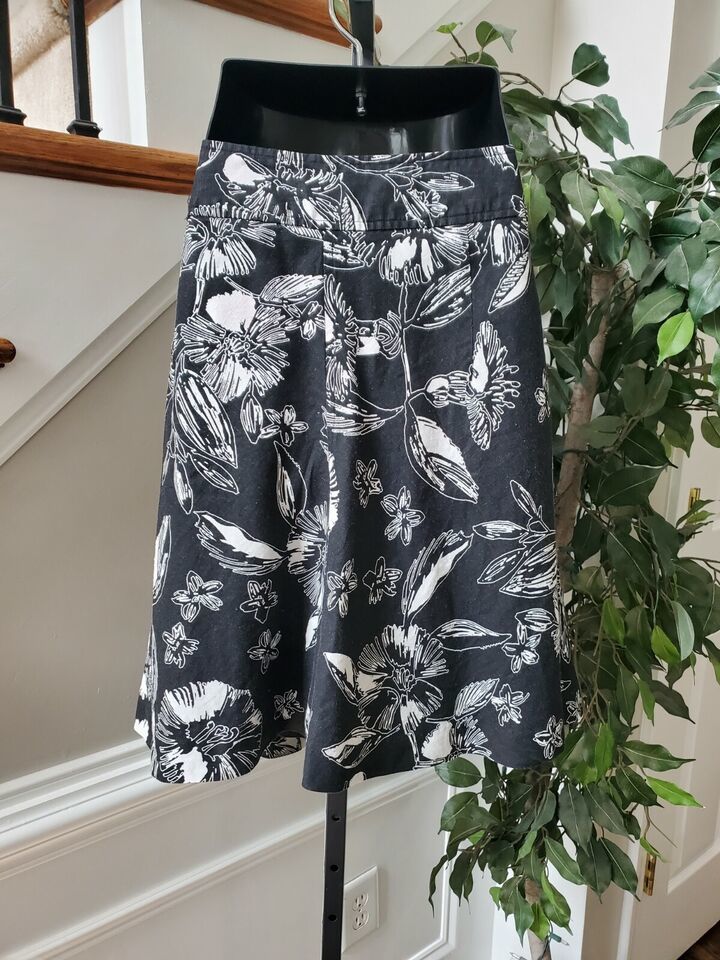 Merona Women's Black & White Floral 100% Linen A-Line Casual Short Skirt Size 14