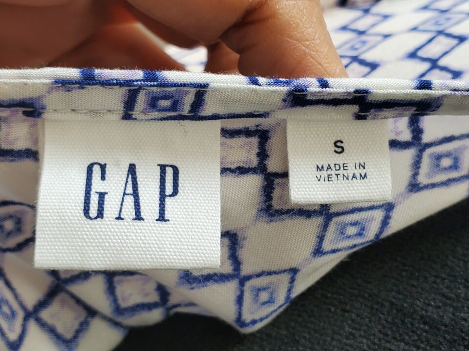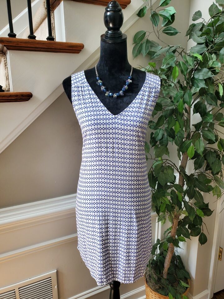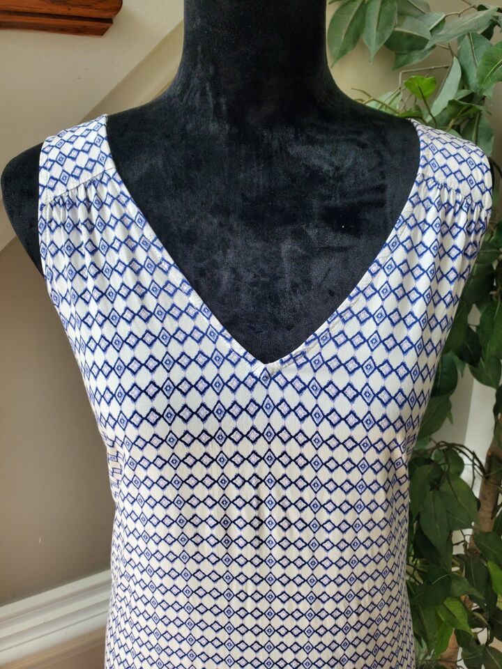 Gap Women's White & Blue 100% Rayon V-Neck Sleeveless Knee Length Dress Size S