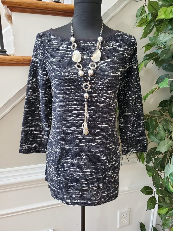 Liz Claiborne Women's Black Polyester Round Neck Long Sleeve Blouse Size Medium.