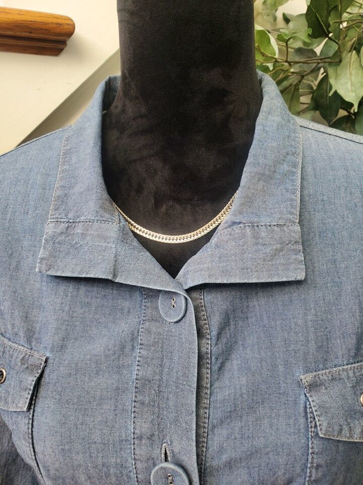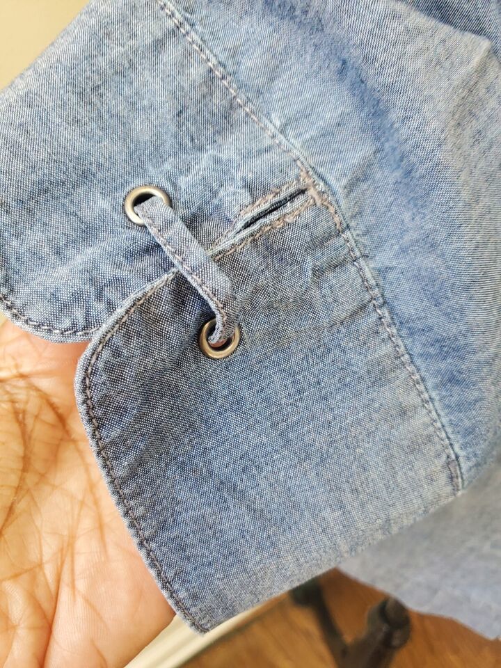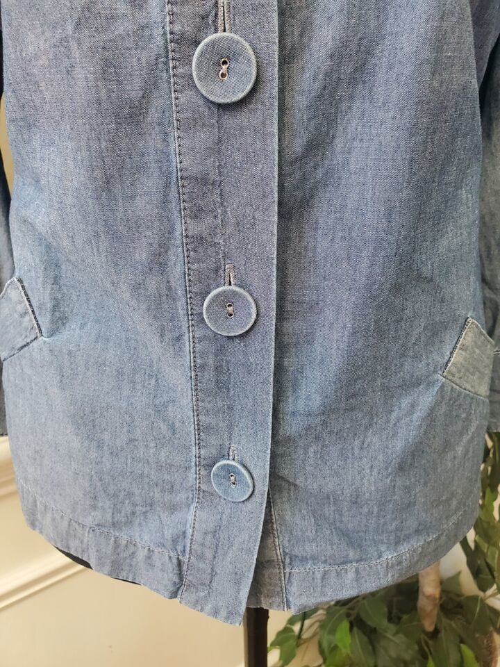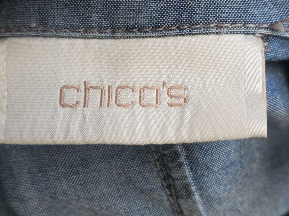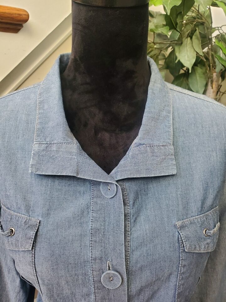 Chico's Women Blue Cotton Long Sleeve Chambray Button Front Pocket Jacket Size 2