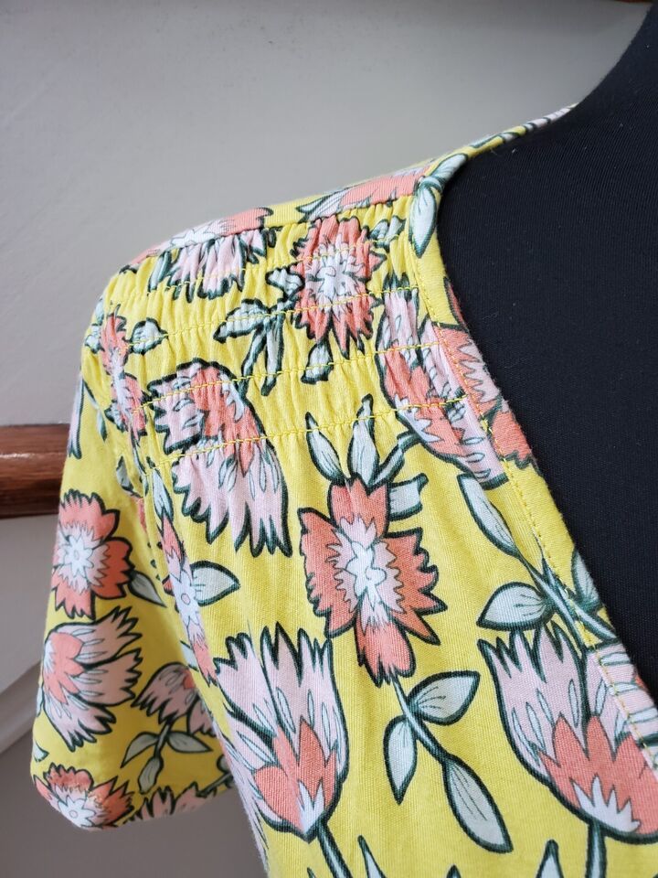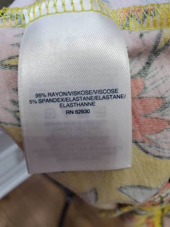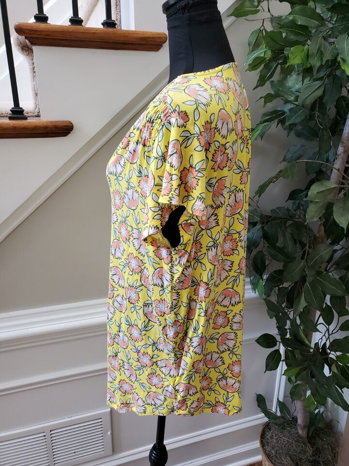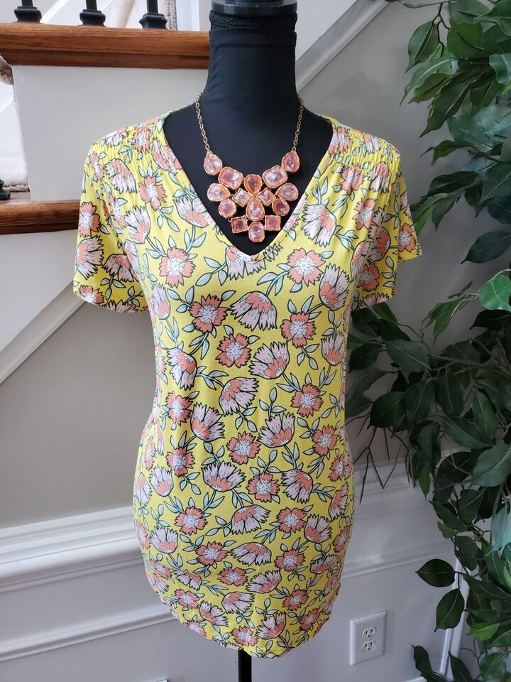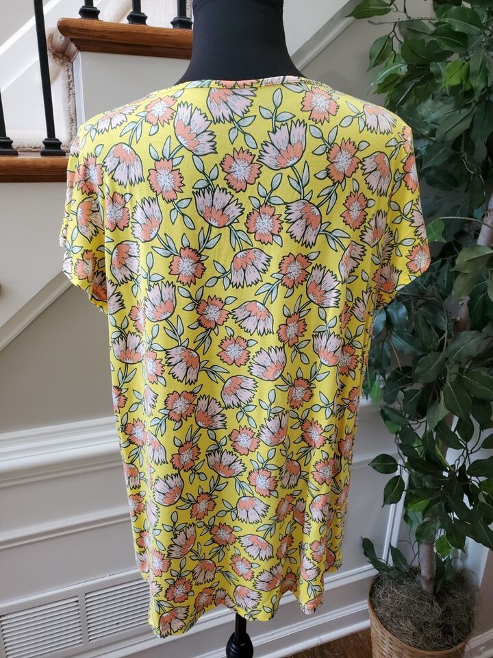 Land's End Women's Yellow Floral Rayon Short Sleeve V-Neck Casual Blouse Size XL.