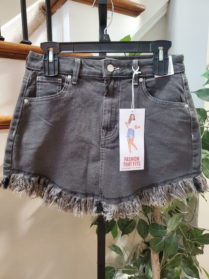 Celebrity Pink Women's Black Denim Cotton Festival Fringe Mini Skirt Size 5/27