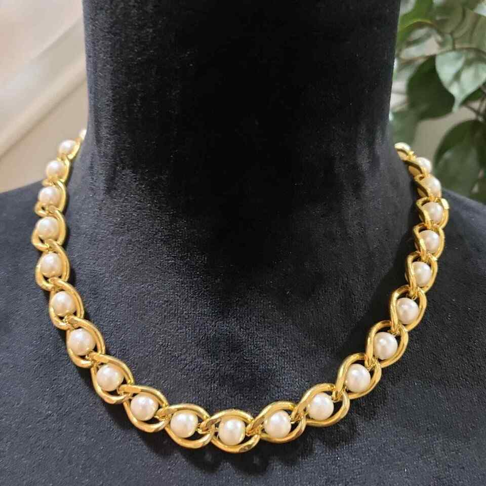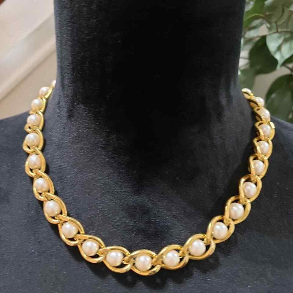 Womens Beautiful Gold Tone Chain Link White Faux Pearl Necklace