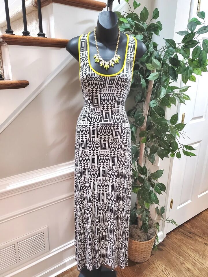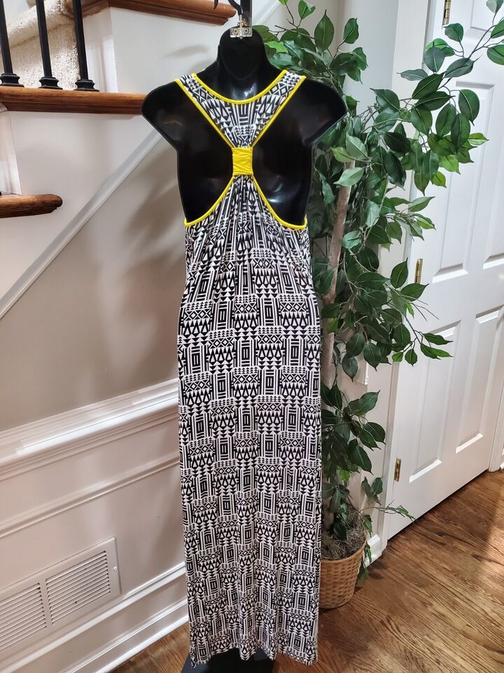 Calvin Klein Women's Black White Rayon Scoop Neck Sleeveless Long Maxi Dress 4.