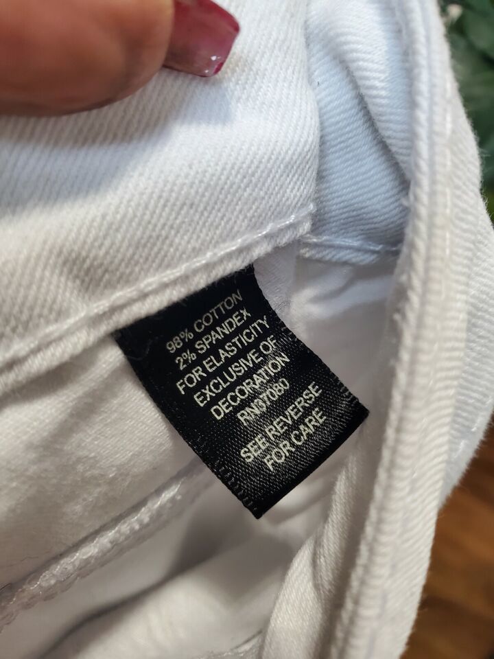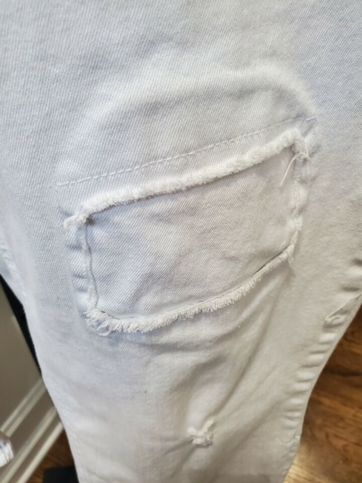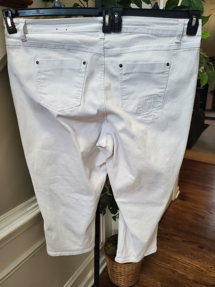 Cato Premium Women Solid White Cotton Mid Rise Classic Distressed Pant Size 24