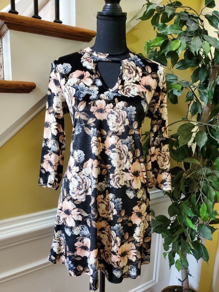 How Very Loved Boutique Boho Floral Navy Blue Mini Tunic Dress Small