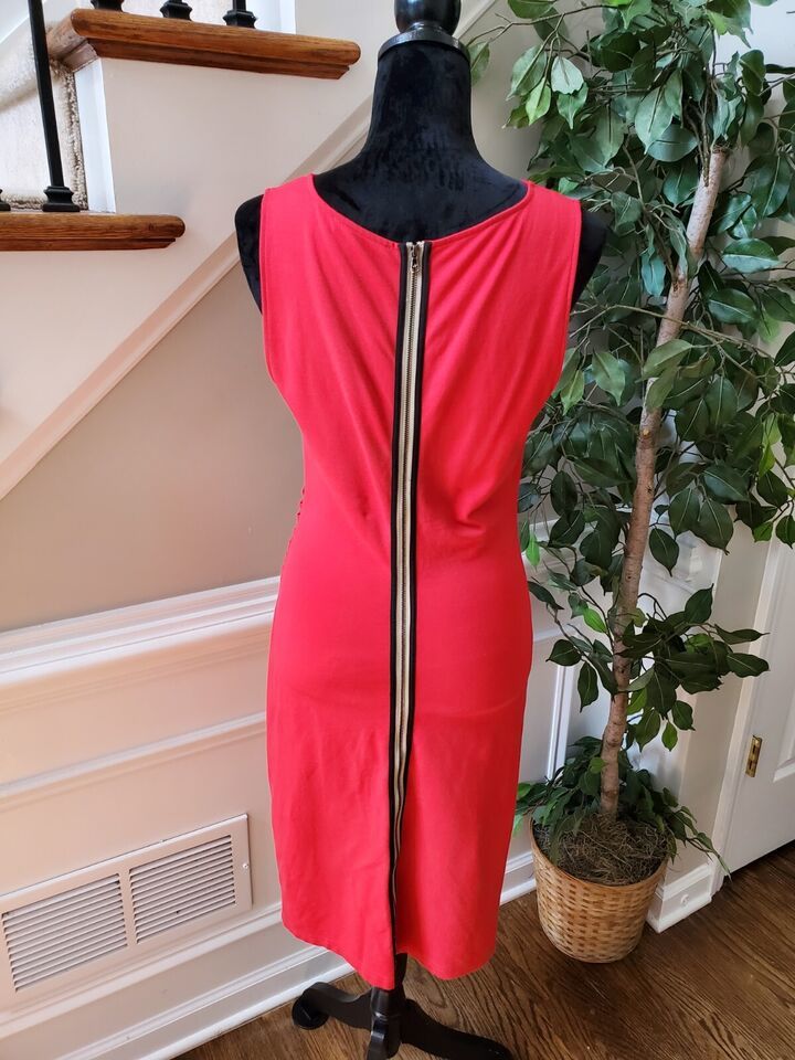 Kenneth Cole Women's Red Rayon Round Neck Sleeveless Knee Length Dress Size 8