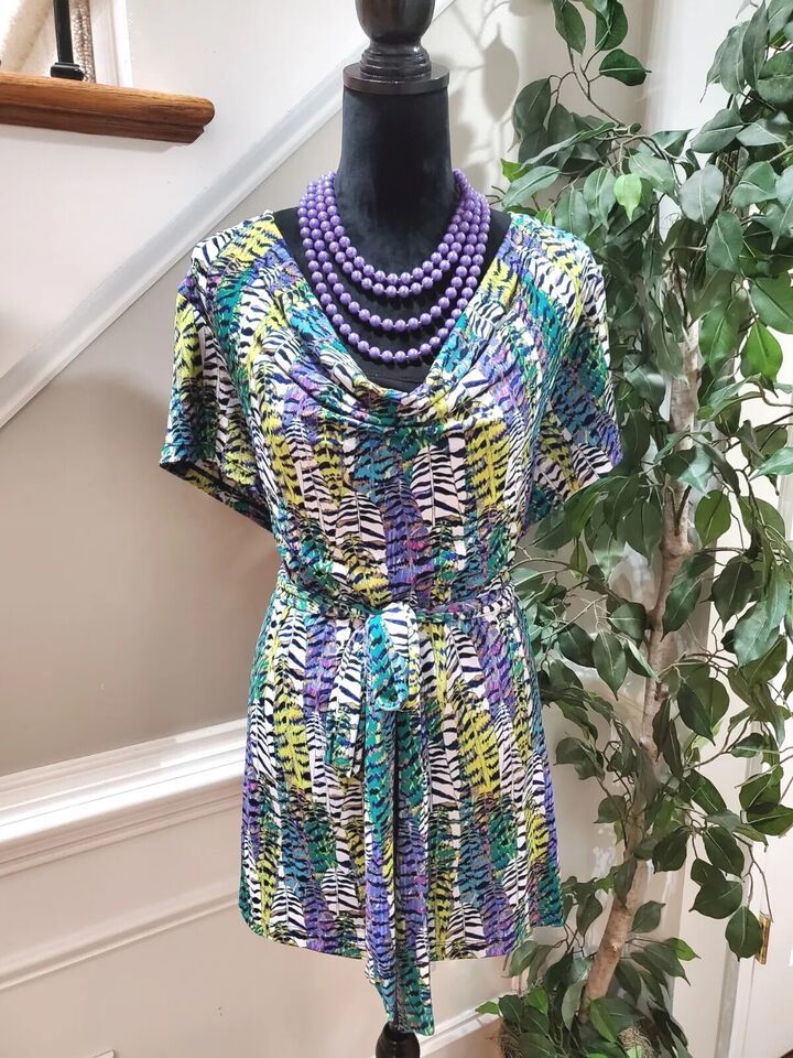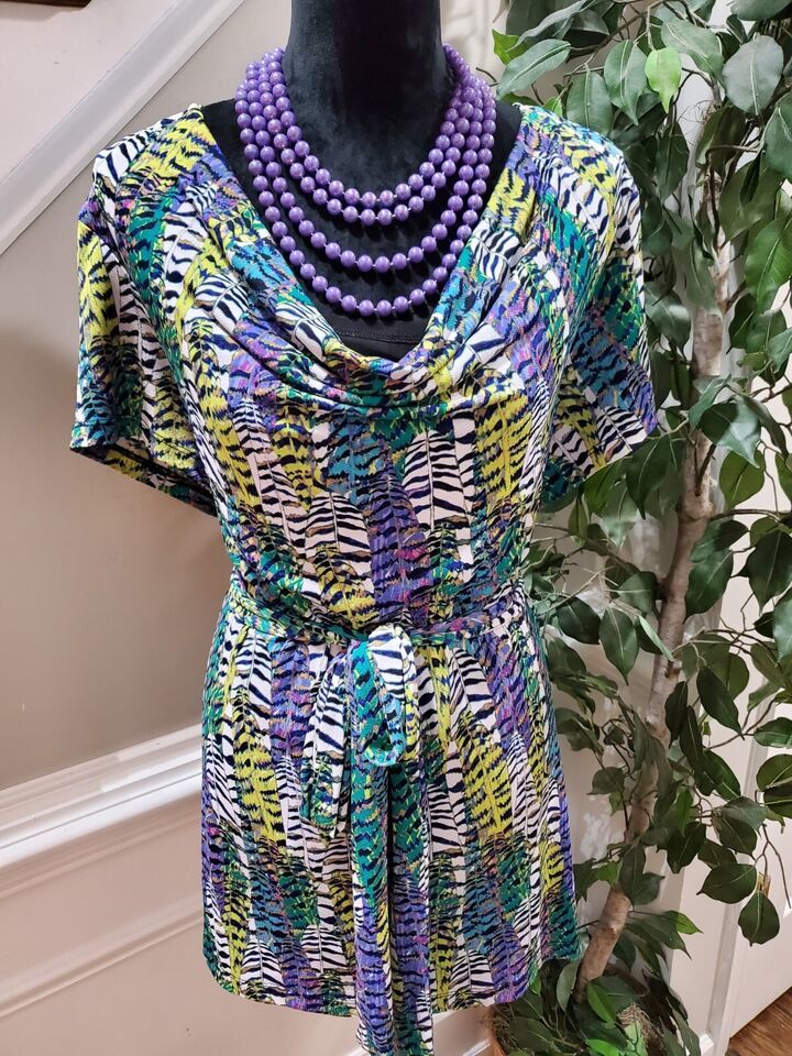 Dana Buchman Women Multicolor Polyester Cowl Neck Short Sleeve Pullover Shirt 1X