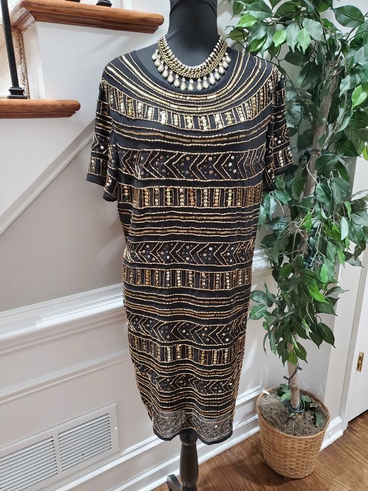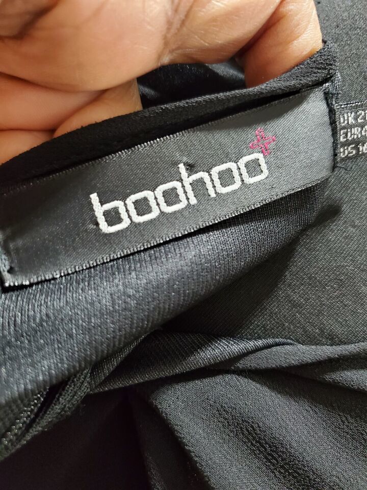 Boohoo Women Black Polyester Short Sleeve Round Neck Knee Length Fancy Dress 16.