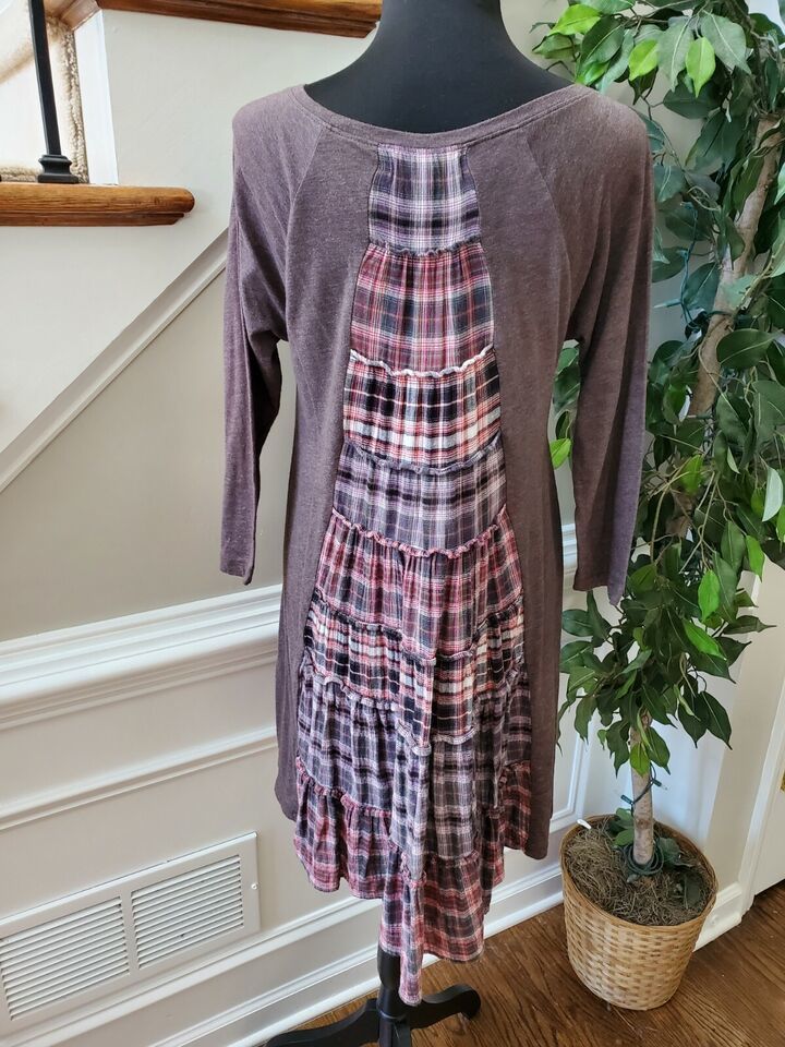 Altar'd State Women Brown Cotton Scoop Neck Long Sleeve Knee Length Dress Size M