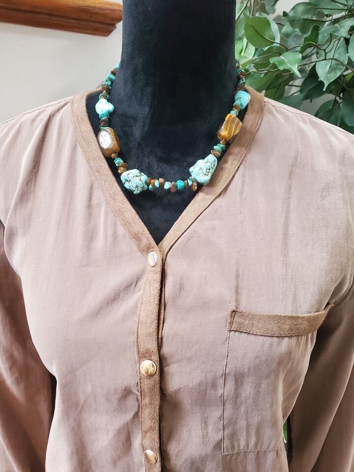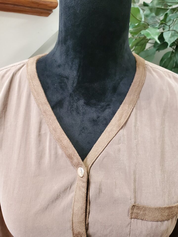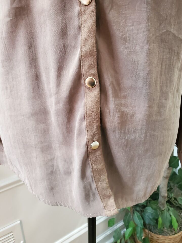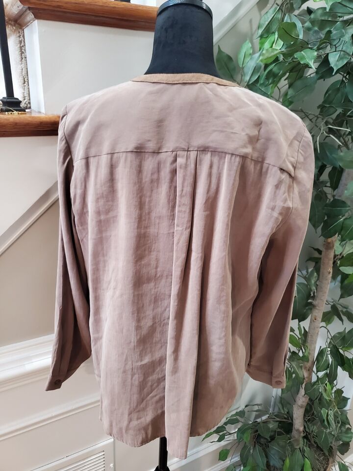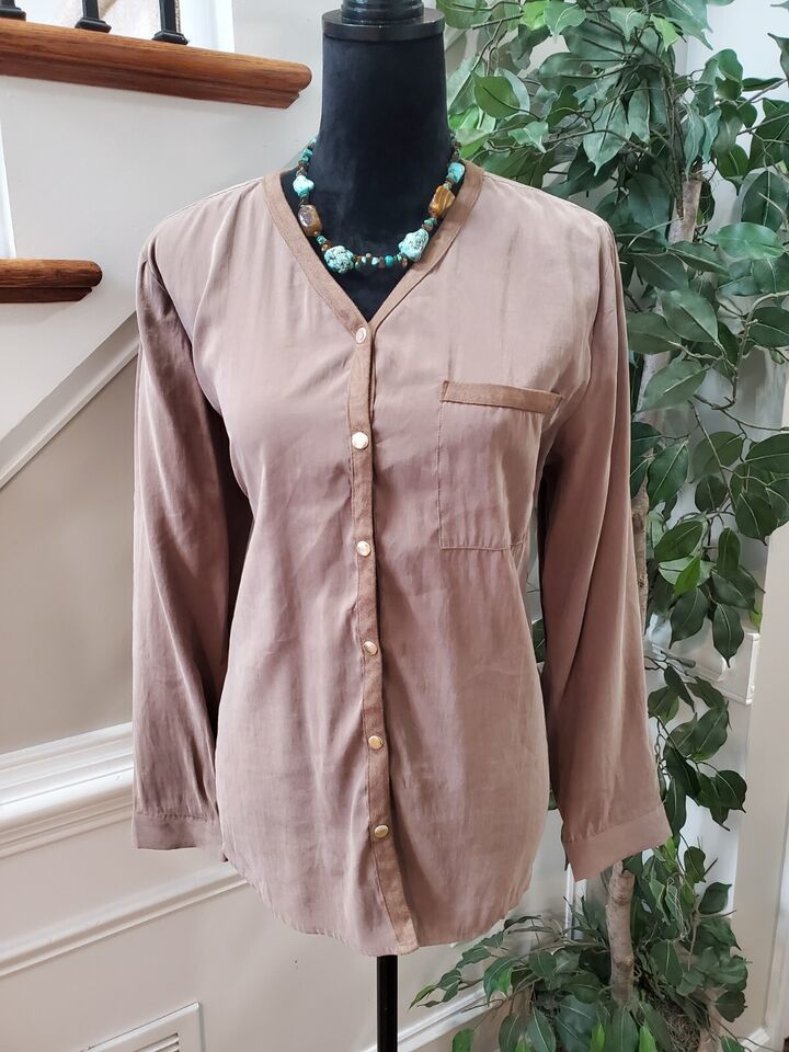 Chico's Women Brown Modal Long Sleeve V Neck Button Front Top Blouse 2 Large