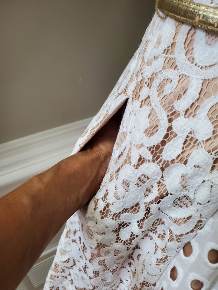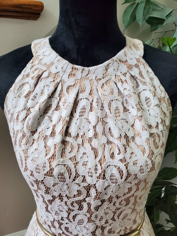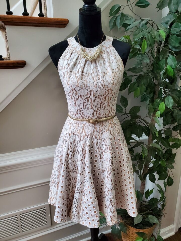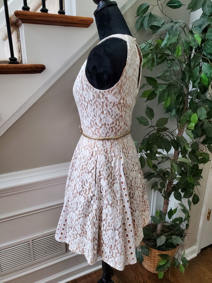 Eliza J Women's White Polyester Round Neck Sleeveless Knee Length Dress Size 4