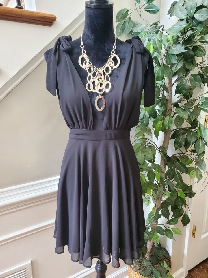 Forever 21 Women's Black Polyester V-Neck Sleeveless Casual Knee Length Dress M