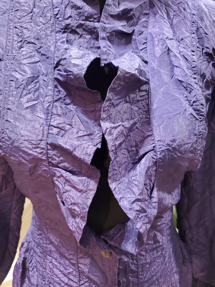 Chico's Women's Purple Polyester Long Sleeve Button Down Ruffle Shirt (0) Small