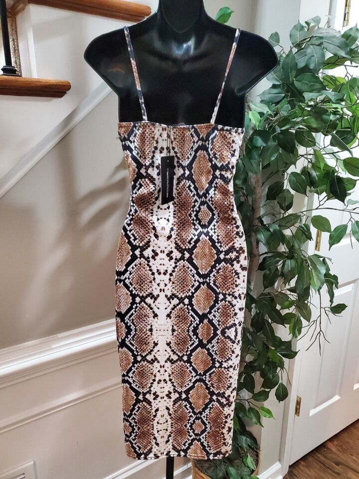 Pretty Little Thing Beige Snake Skin Square Neck Sleeveless Strappy Midi Dress 4