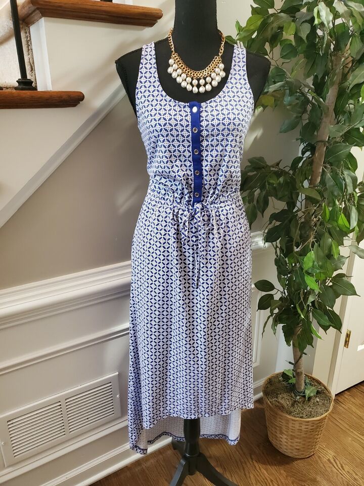Gap Women's Blue & White Polyester ScoopNeck Sleeveless Hi Low Dress Size XS