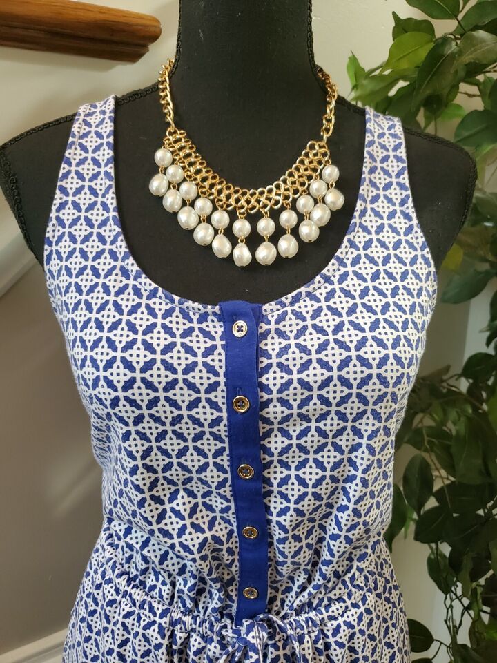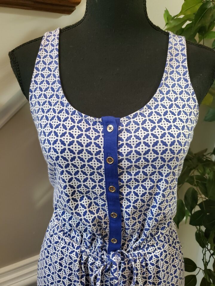 Gap Women's Blue White Polyester ScoopNeck Sleeveless Knee Length Dress Size M.