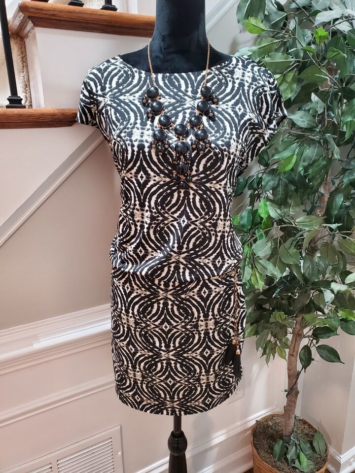 AB Studio Womens Polyester Short Sleeve Round Neck Knee Length Dress Size Medium
